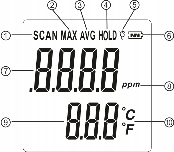 - Погрешность измерения: ≤ 50 ppm: ±5 ppm; (50~100) ppm: ±10%,