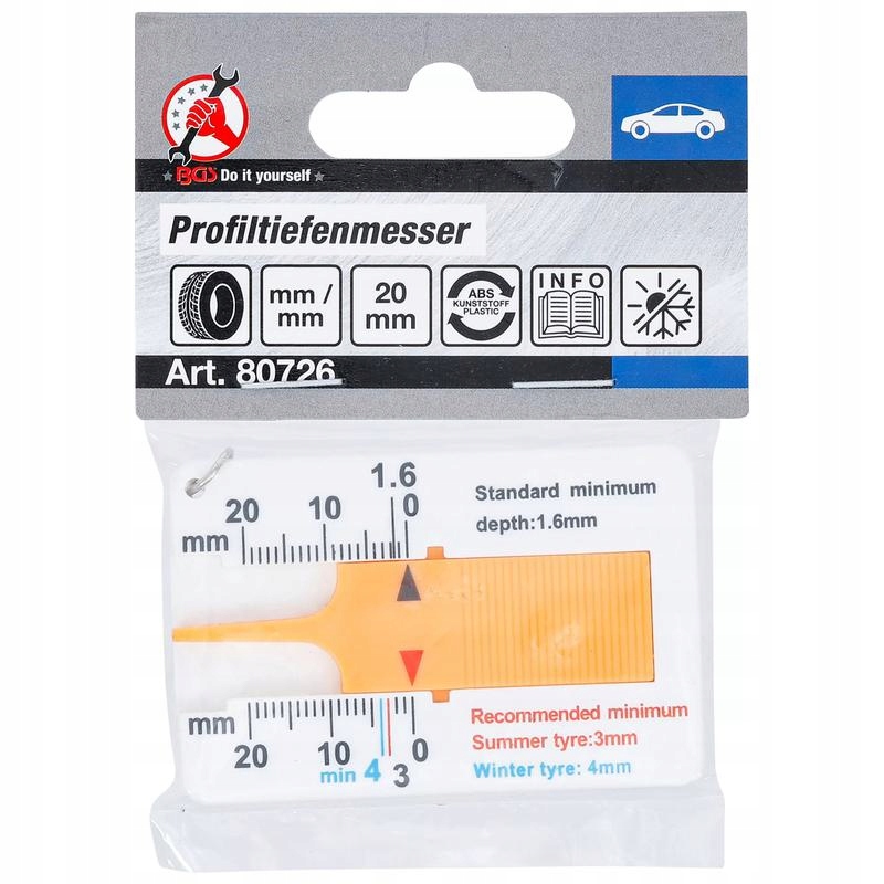 Метр глубины протектора шин с ключом кольцо 0-20 мм BGS DIY 80726
