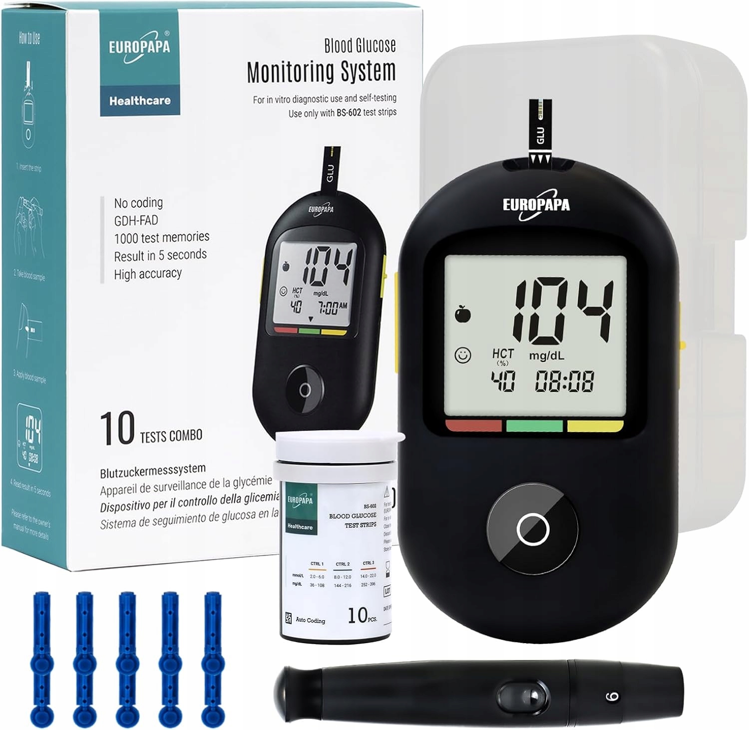 Europapa Glubapa BG-710-это устройство, которое сочетает в себе высокую точность, простоту обслуживания и современный дизайн. Это отличный выбор для людей с диабетом, а также для тех, кто хочет регулярно контролировать уровень глюкозы. Благодаря результатам сохранения результатов и быстрого измерения, это незаменимый инструмент для мониторинга здоровья.