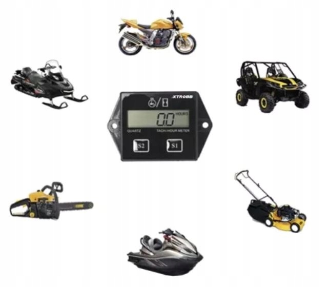 Счетчик позволяет измерять время работы скутеров, мотоциклов, газонокосилок, электрогенераторов и многих других машин внутреннего сгорания.