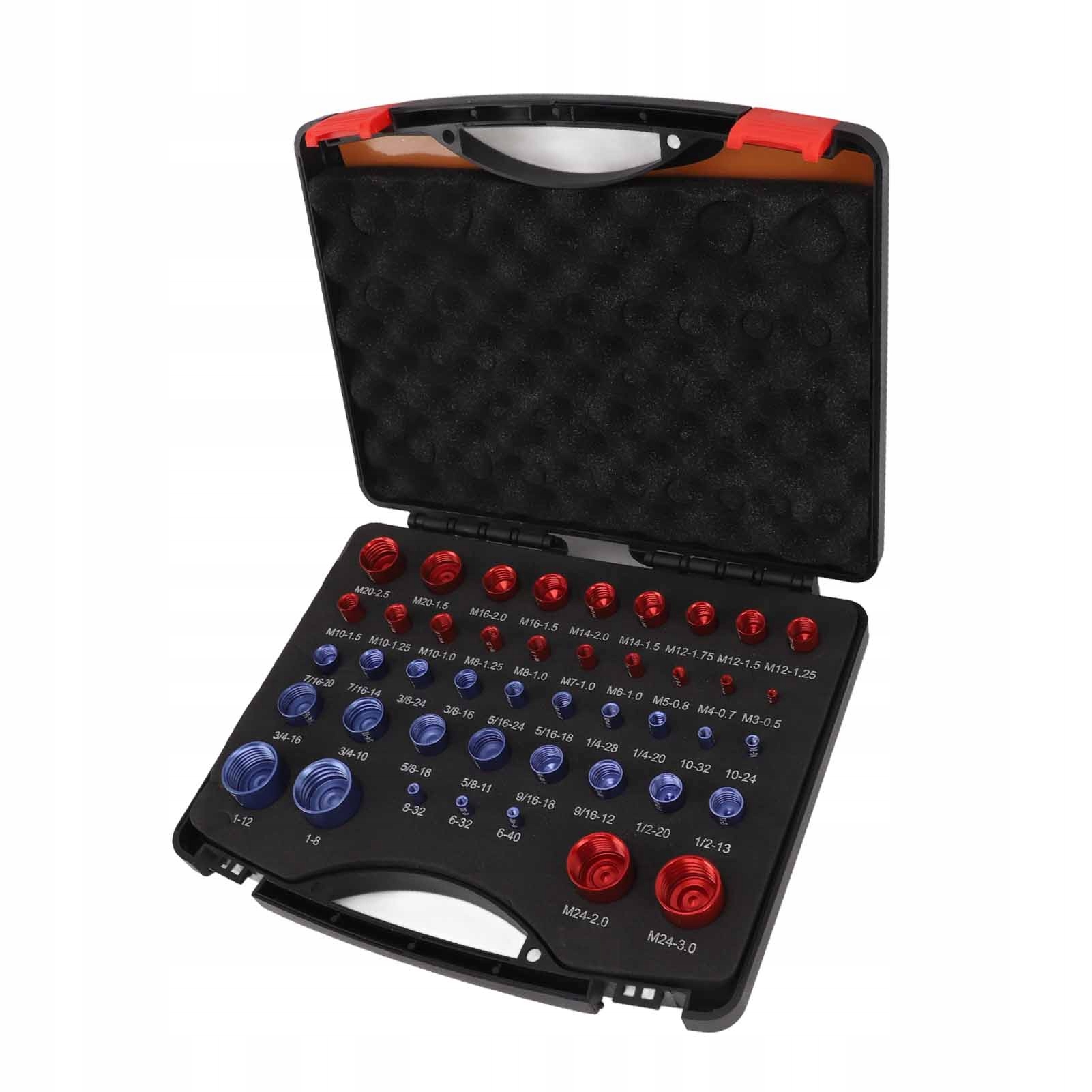 1. Улучшенный набор проверки резьбы: каждое устройство проверки бугорки вставлено в хорошо -щечную пену, которая держит их сильно на месте, чтобы предотвратить отскакивание в коробке, но недостаточно сложно, чтобы их можно было легко удалить. Проще в использовании, чем подключенные инструменты для проверки крышек или потоков, потому что вам больше не нужно носить целый ряд мер для измерения отдельных винтов или гайков, и вы можете достичь любого плотного места.