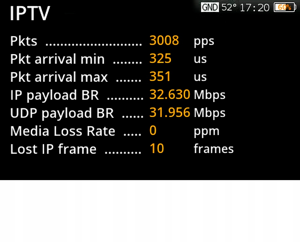 В сигналах IPTV также анализируются другие данные, специфичные для протокола (UDP/RTP), такие как формат UDP, скорость потери мультимедиа, потерянные IP-кадры.