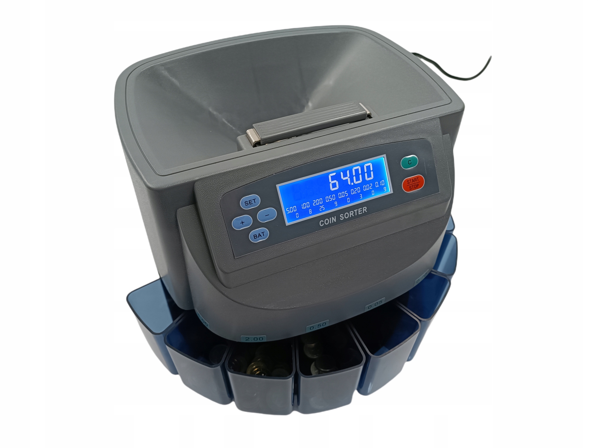 Сортирует и считает монеты (PLN) 8 номиналов (без 1 гроша).