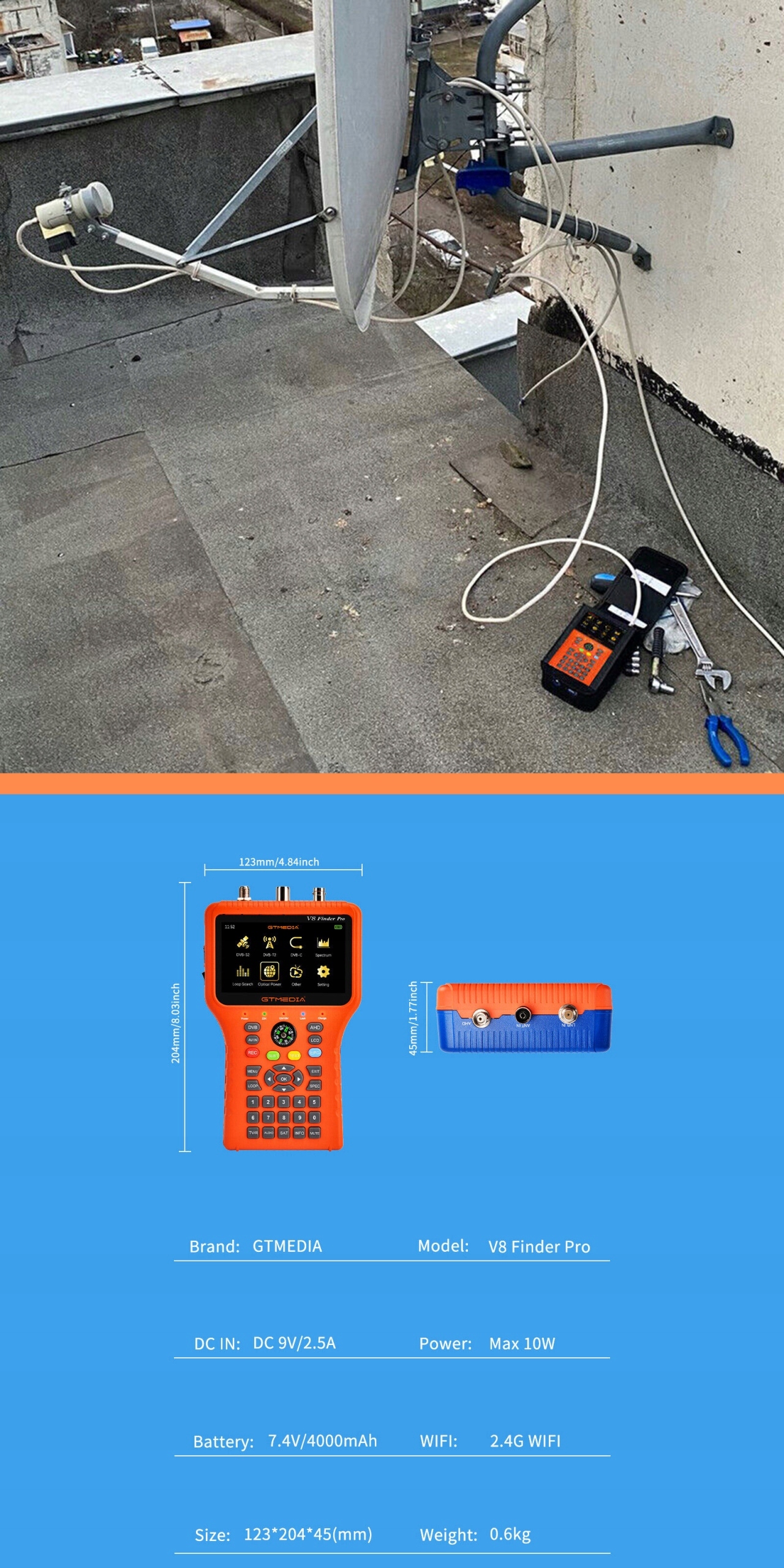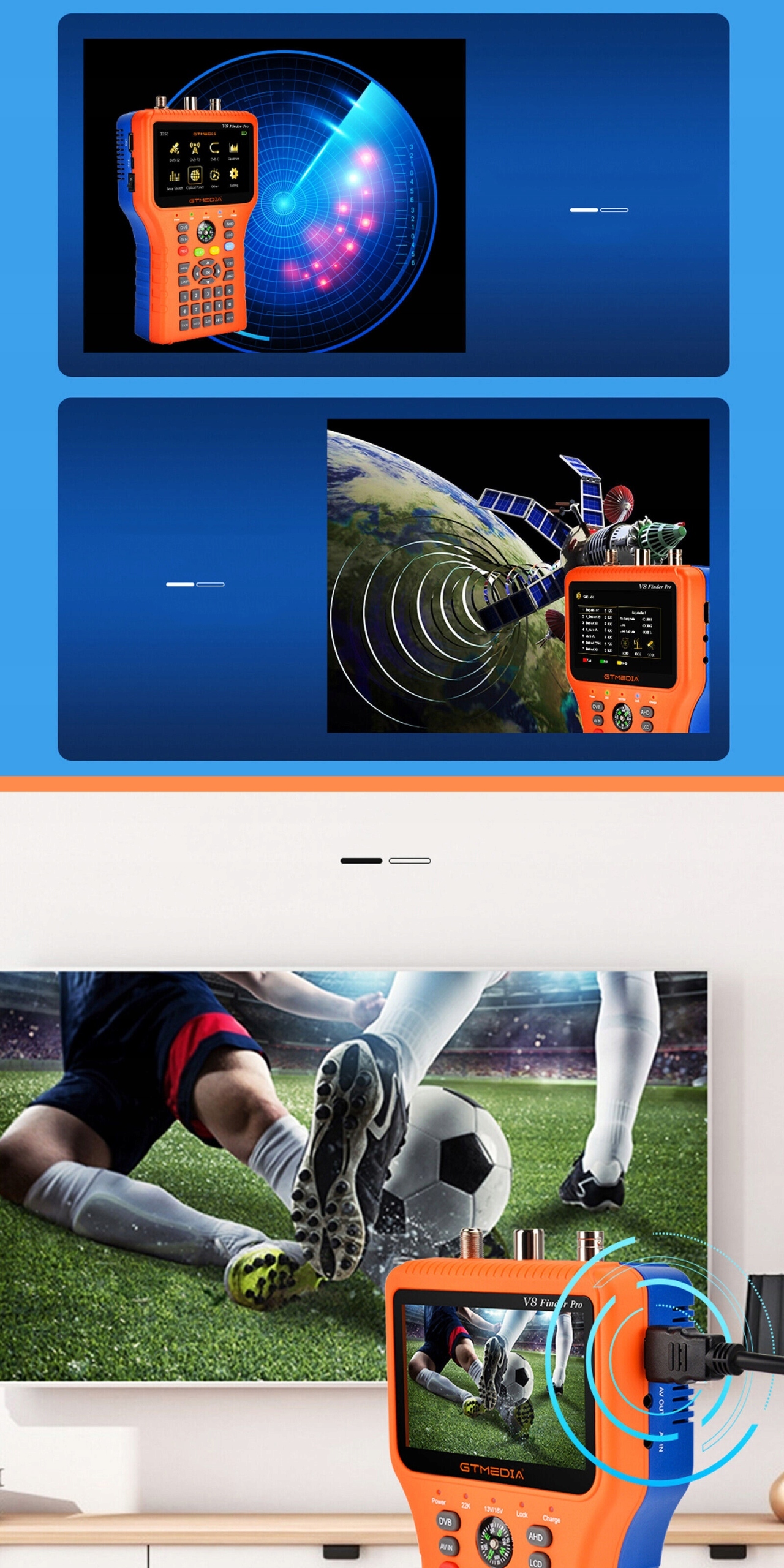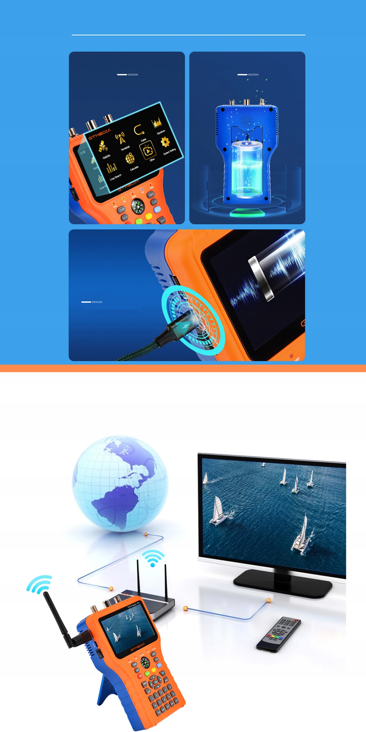 📡 gtmedia v8 finder pro в DVB-S2X/S2/S/S/T2/T/C/ATSC-C и MPEG-2/4 H.264/H Размеры, низкий вес, интенсивный пользователь-интерфейс и долгосрочные батареи.