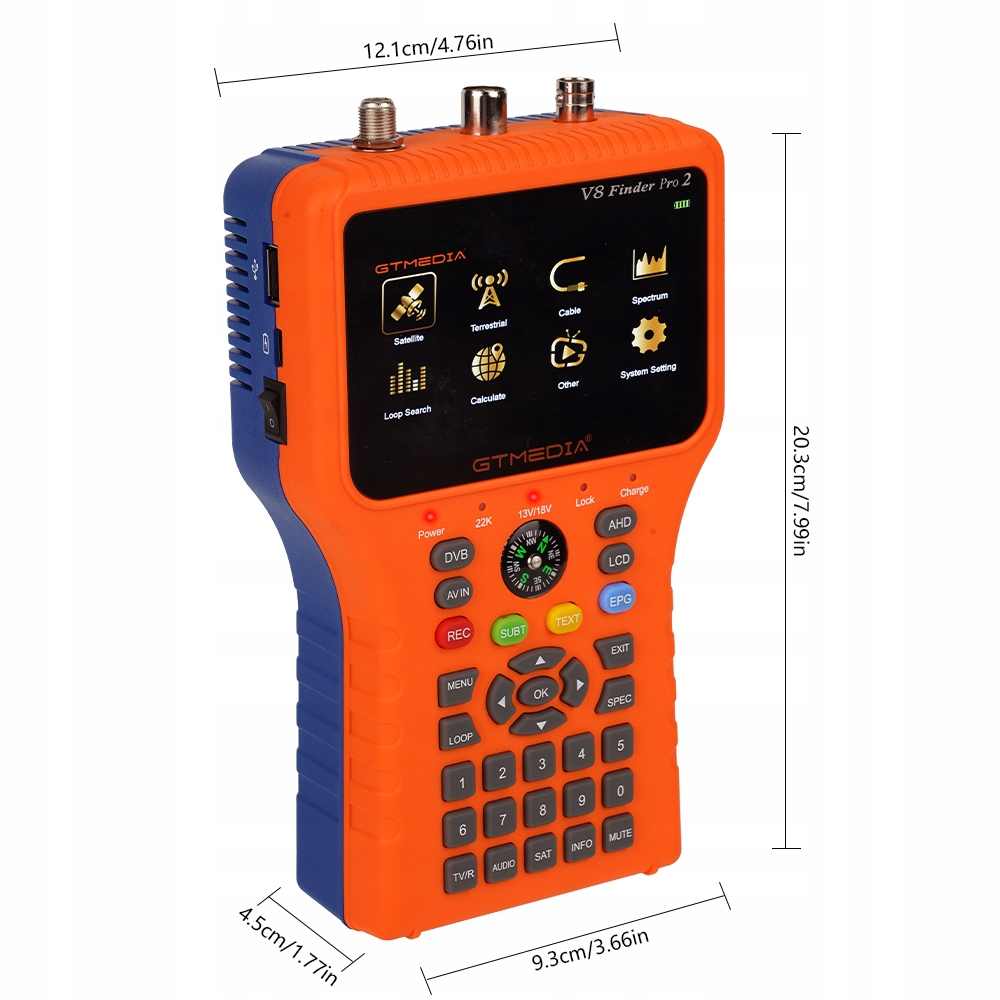 - DVB-S2X/S2/S/T2/T/T/C/ATSC-C, MPEG-2/MPEG-4. Цифровое измерительное устройство для измерения прочности и качества сигнала. Поддерживает начальную настройку всей информации о спутниках. Поддерживает поиск в петле, автоматическом, слепых, ручном или резьбе. Поддерживает звуки Diseqc 1.0/1.1/1.2, однозначный, 0/22 кГц. Батареи