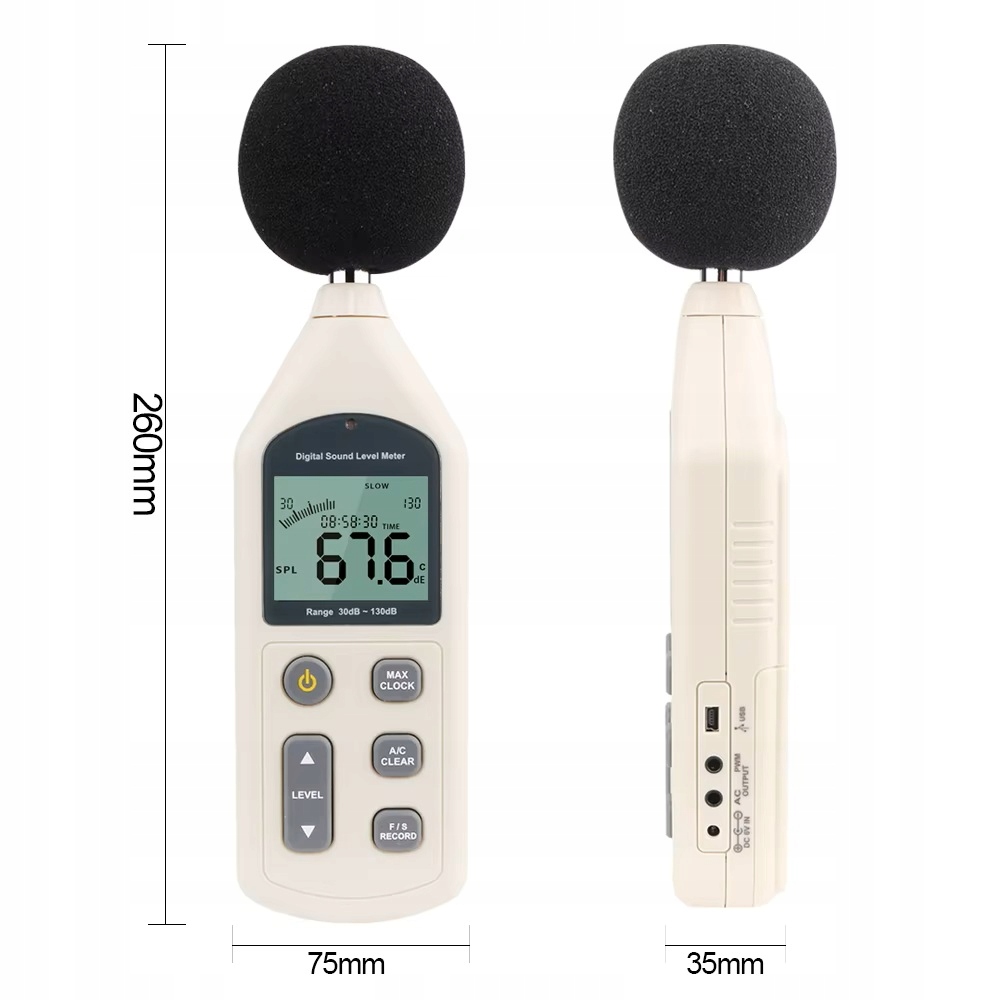 - Диапазон измерений : 30-130DBA, 35-130DBC