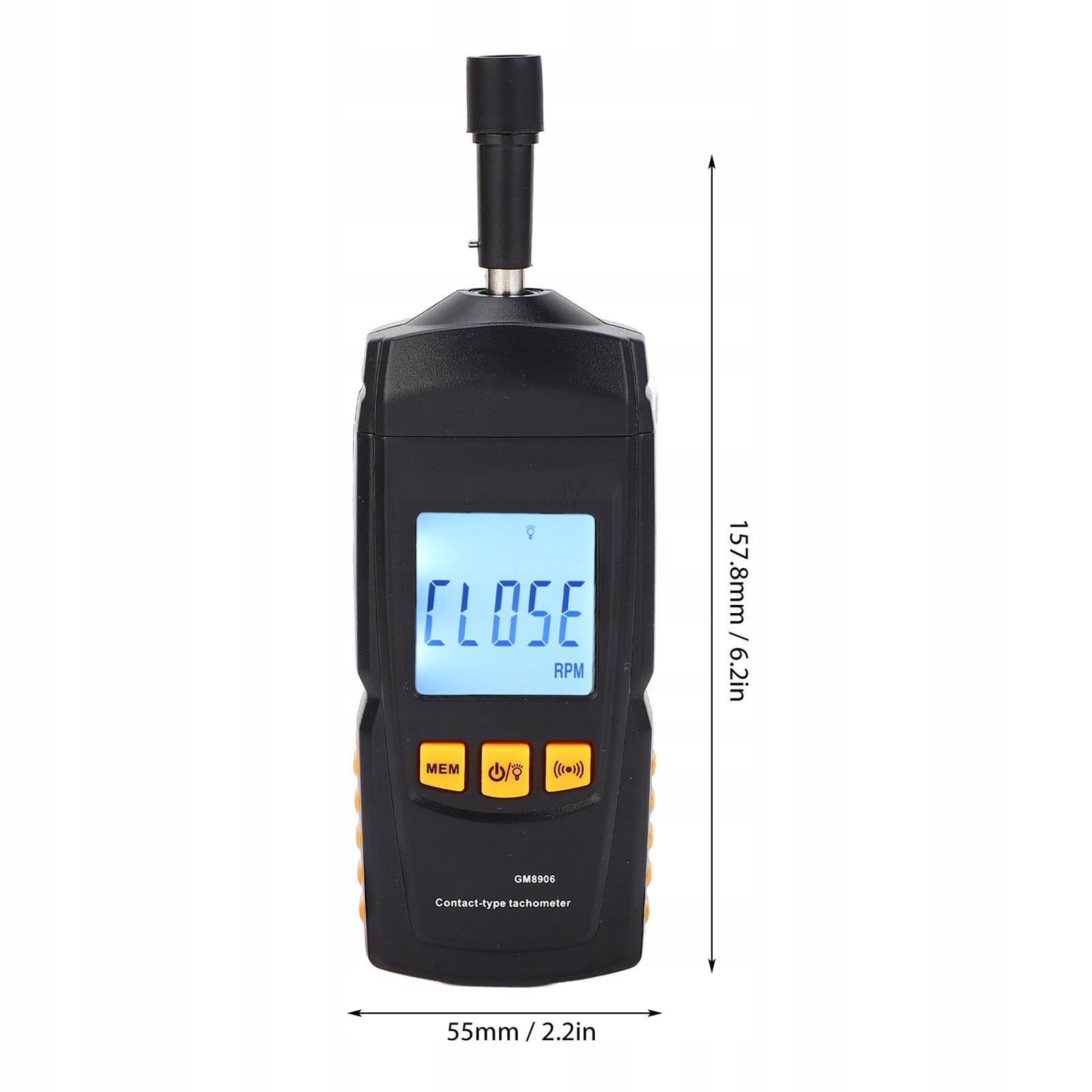 Функция: 1. Эффективное измерение скорости: измеритель вращения типа контакта тщательно измеряет скорость от 0,5 до 19999 об / мин, обеспечивая точные показания и подходит для различных применений.