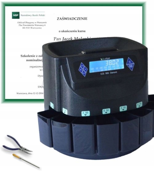 — это НОВАЯ машина на польском рынке. Прибор сортирует и считает монеты 8 номиналов - без монет достоинством 1 цент (1 грош упадет в контейнер с монетами достоинством 10 центов и будет засчитан как 10 грошей)