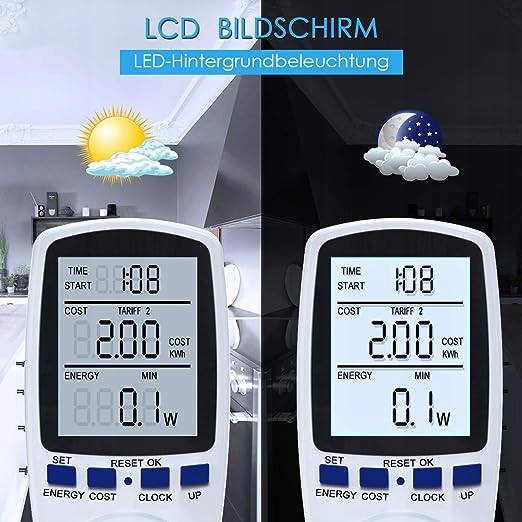 - ✔ Функция счетчика тока и 7 режимов: измерение и расчет стоимости потребления энергии и подключенных устройств. Считает потребление в киловатт-часах с высоким допуском эффективности макс. 16 А, совместимо с 230 В переменного тока.