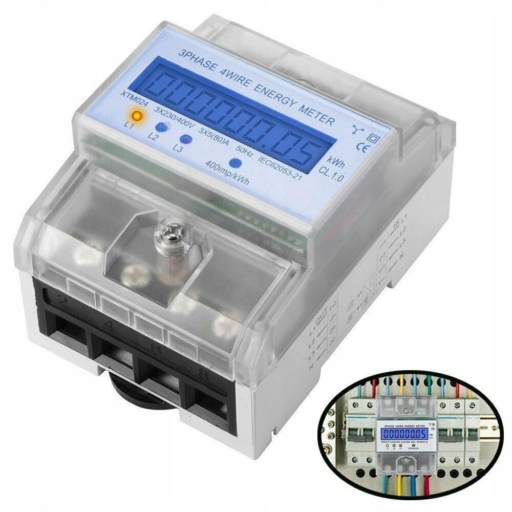 Трехфазный счетчик 3-фазный DIN 230/400V 5-100A Электричество.