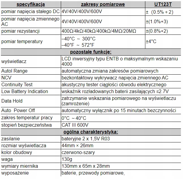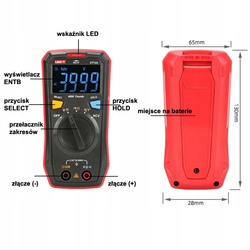 UT123T — простой универсальный мультиметр , предназначенный для выполнения основных электрических измерений дома, в автомобиле или в любительской мастерской. Компактные небольшие внешние размеры идеально подходят для мобильного использования или в качестве запасного карманного мультиметра для электронщиков или электриков. Мы особенно рекомендуем цифровой мультиметр UT123T новичкам в электронике или людям, которые не имеют ежедневного контакта с электричеством. Благодаря упрощенной конструкции и всего двум измерительным клеммам мы всегда правильно подключаем измерительные провода счетчика. Ограниченные диапазоны измерений ограничены необходимым минимумом. и поддиапазоны переключаются автоматически (счетчик с автоматической сменой диапазонов измерения).