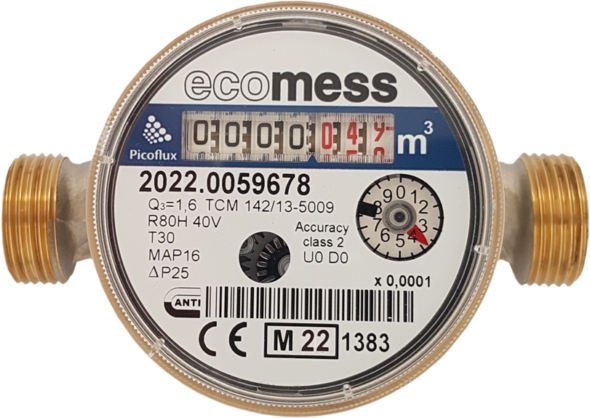 Водосчетчик изготовлен в соответствии с Директивой 2004/22/EC в версии с обжимным кольцом.