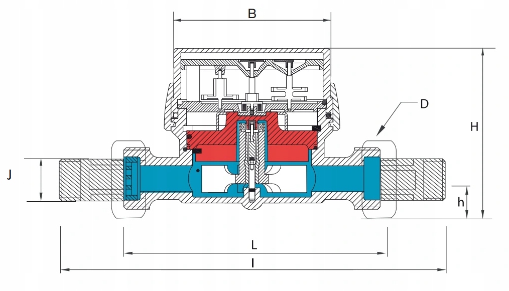 Счетчик воды одноструйный, сухой, оснащенный восьмицилиндровым счетчиком, вращающимся на 360°.