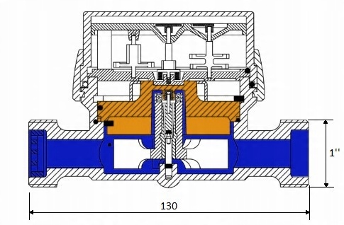- Выходной разъем корпуса водомера адаптирован. для опциональной установки обратного клапана.