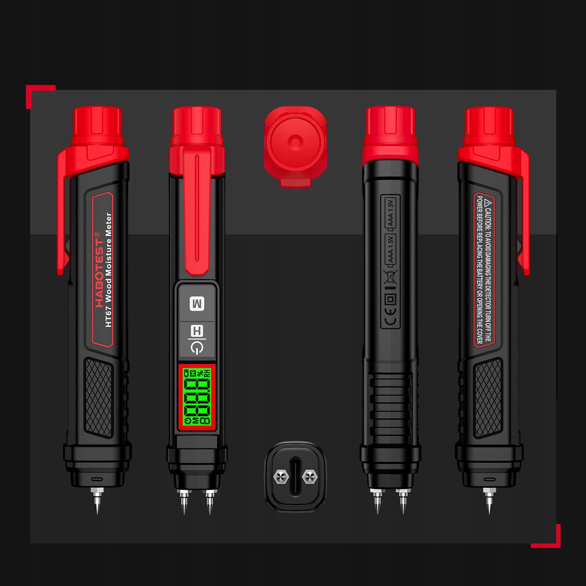 habotest ht67 деревянный измеритель влажности, портативный измеритель влажности стен с 7 калибровочными шкалами, 3-цветочный ЖК-дисплей, измеритель влаги в форме дерева, нагреваемого дерева, стен и строительных материалов (красный и белый) h1>