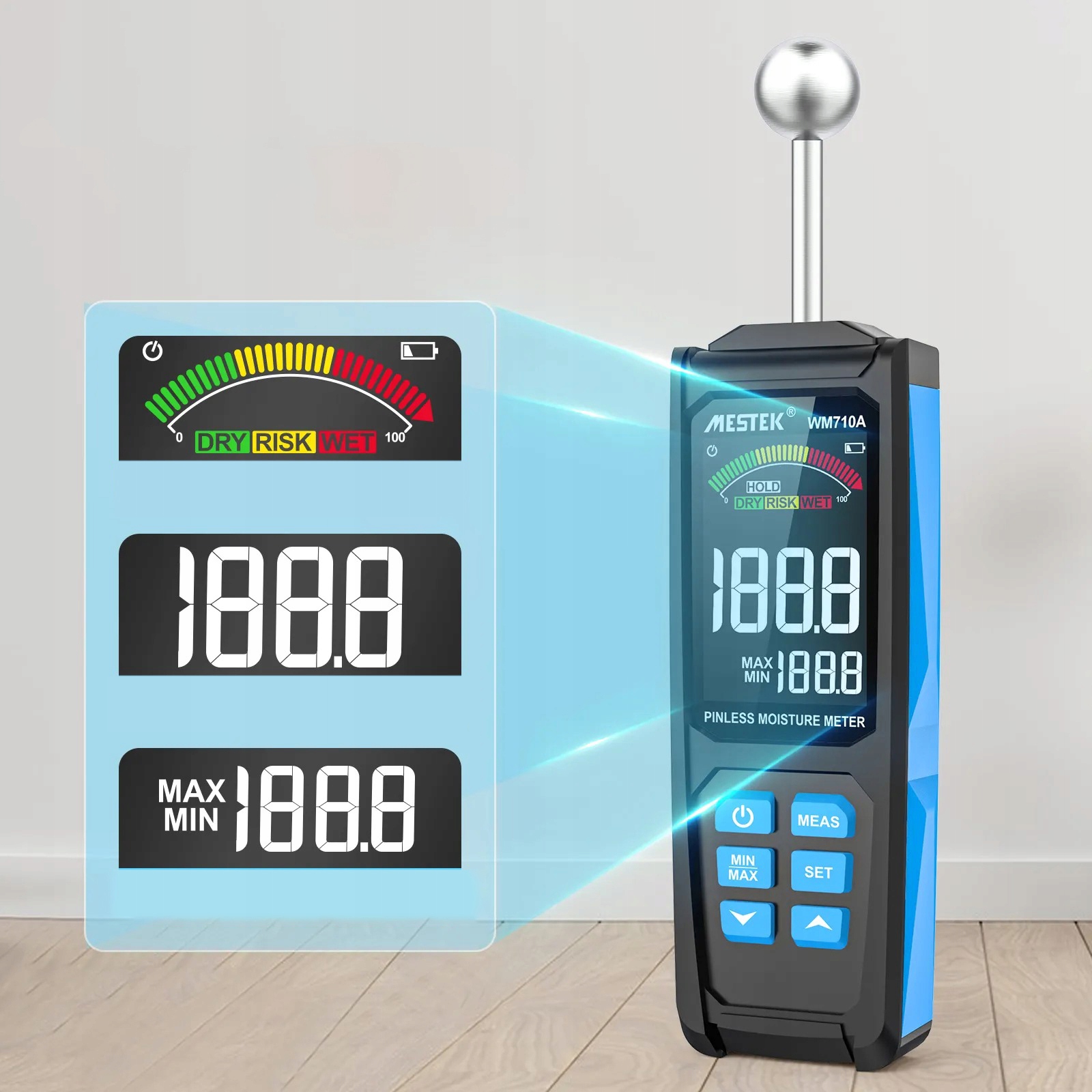 ✅ The wall of the wall moisture is equipped with a 3-inch color HD screen with a three-colored analog strip that displays the status "dry", "risk" and "wet" with "green", "yellow" and " "Red", which is very beautiful and intuitive, and also very easy to read in Условия низкого освещения