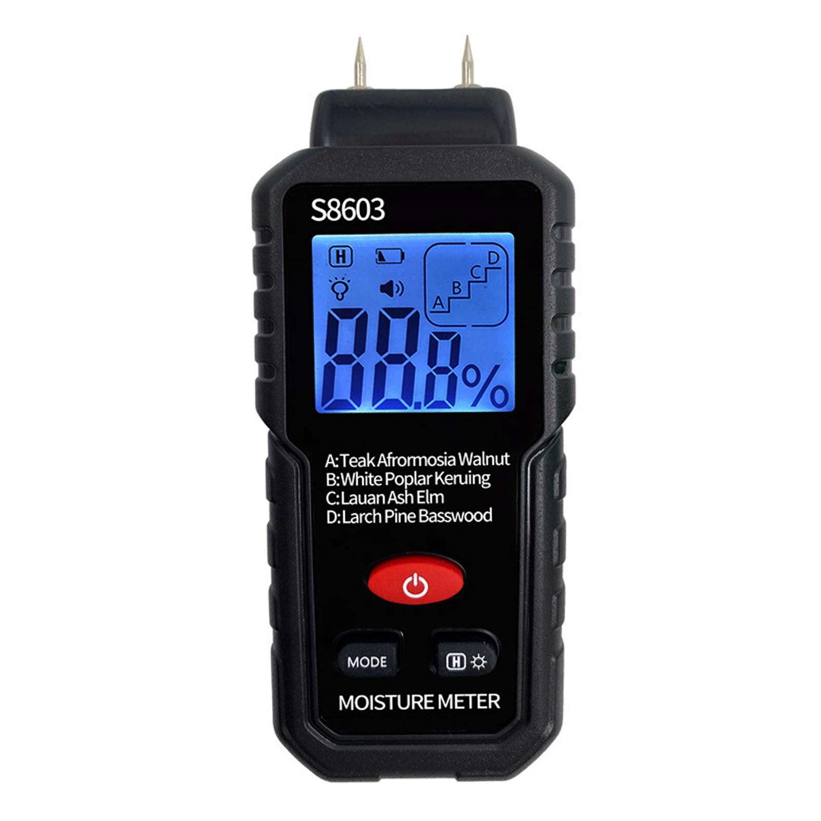 [4 режима]: Устройство для тестирования влажности древесины позволяет переключать режимы в соответствии с 4 древесными группами (A, B, C, D), что может помочь в более точном измерении и тестировании более разных типов деревьев.