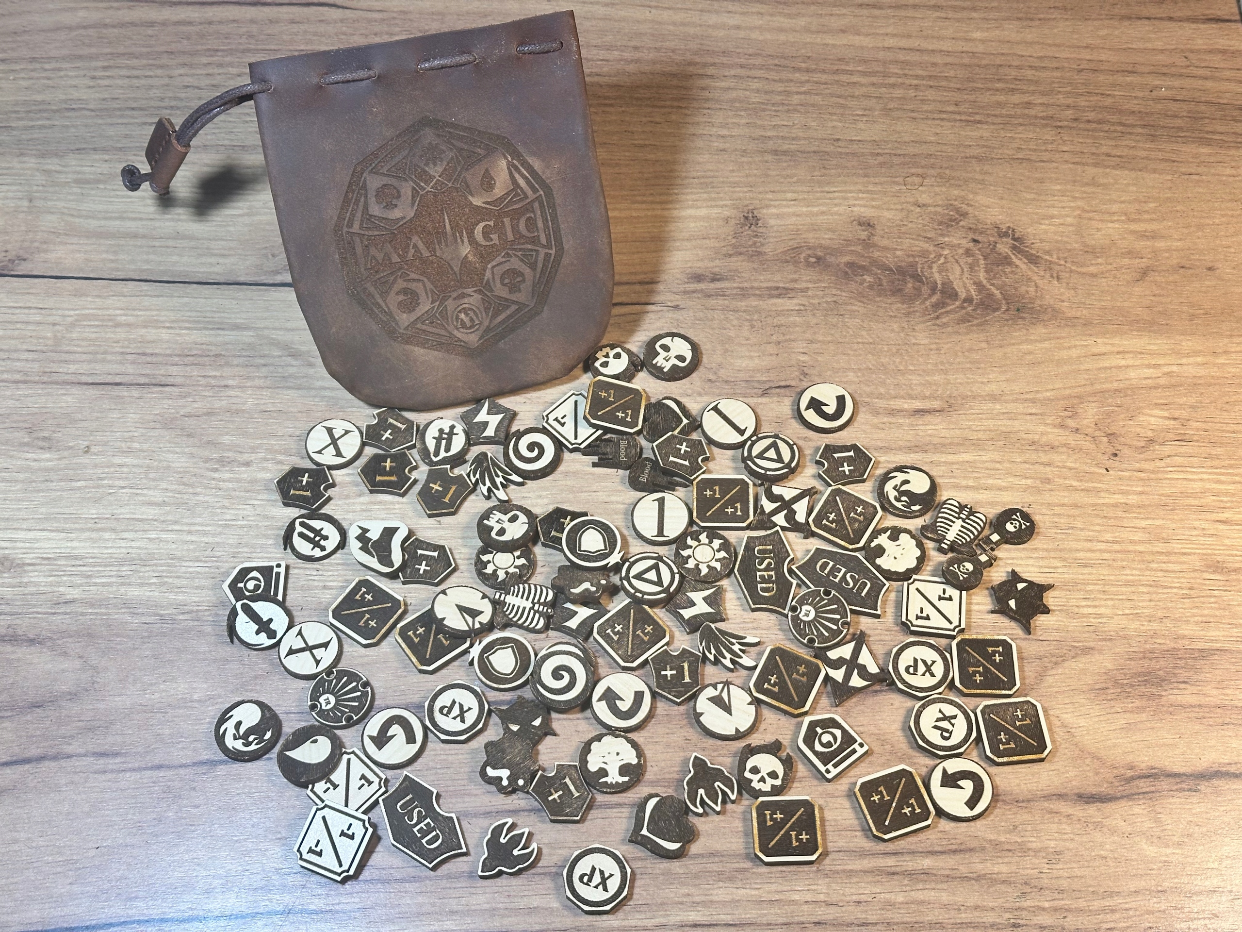 Мы можем предложить маркеры, которые используют магию собрания. Маркеры напечатаны на HDF 3 мм. И они вставлены в красивую сумку из настоящей кожи с гравированной графикой, напоминающей Грегич.