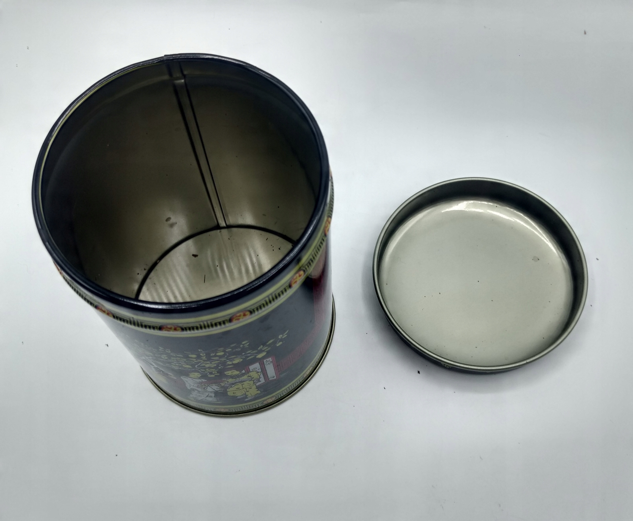красивая банка, цвет вишни, мастер и гейши, птицы, цапли и гуси на крышке,