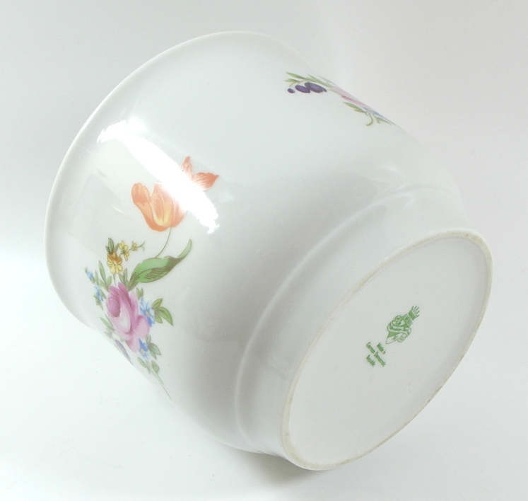 Предмет аукциона — красивая старинная крышка для цветочного горшка. Белый фарфор украшен цветами. Цветы по обе стороны корпуса.