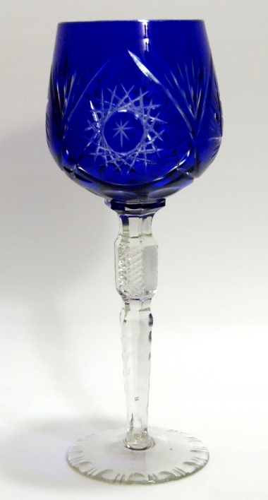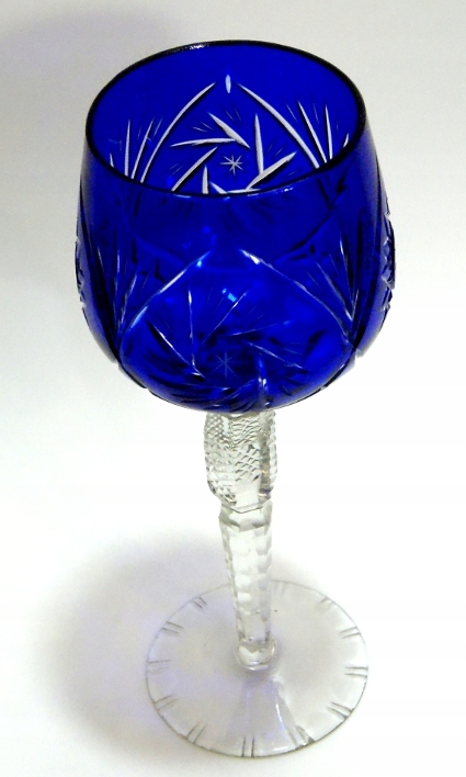 Красивый, старинный бокал для вина - ремер, из кобальта и бесцветного многослойного хрусталя, стекло старое, есть небольшие дефекты, пузырьки воздуха, декор украшен срезом, старый бокал красивый.