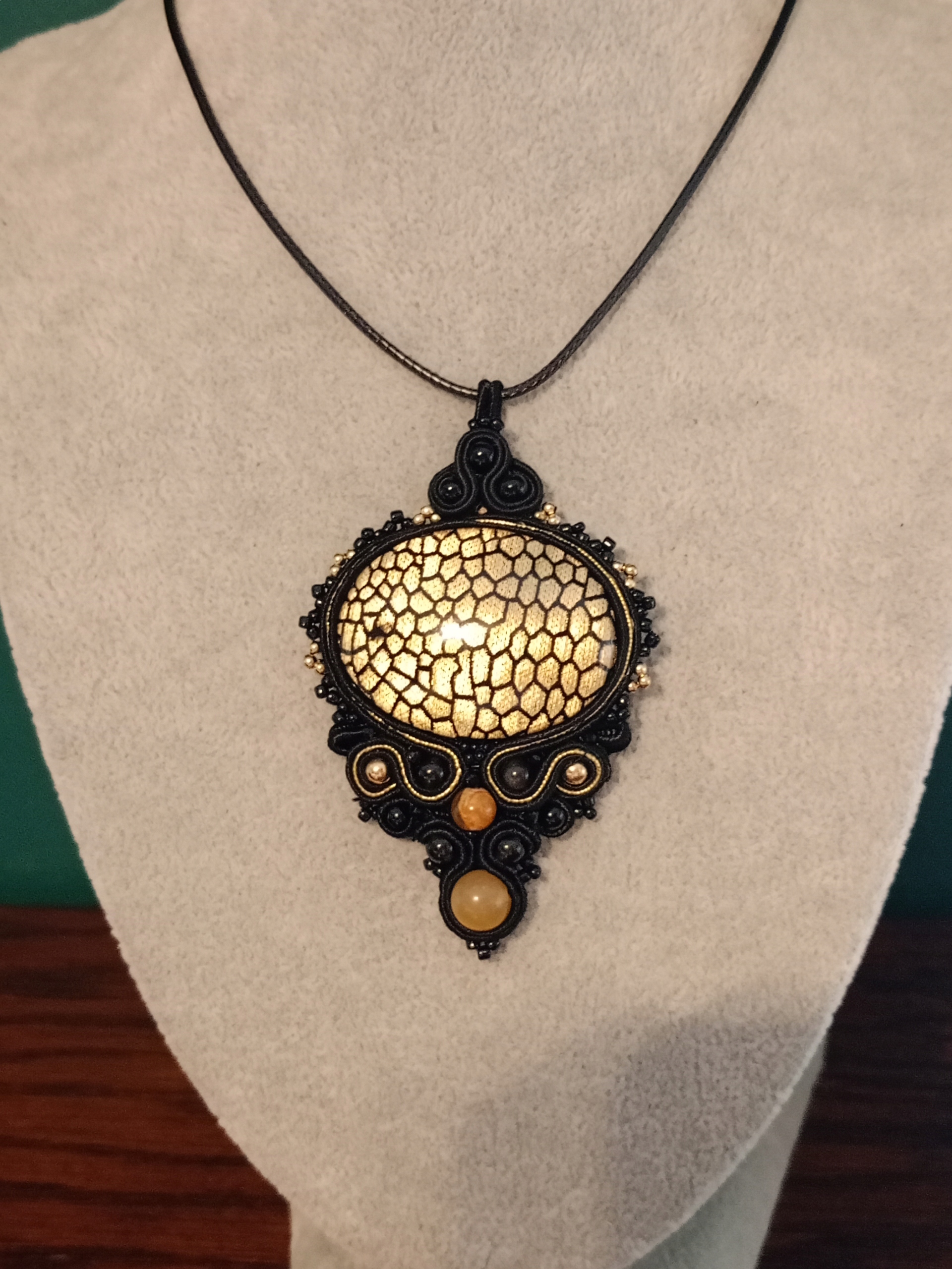 Śliczny wisior sutasz czarno-złoty