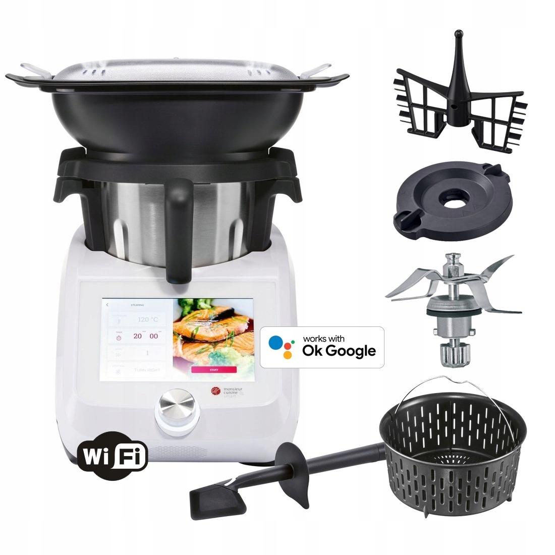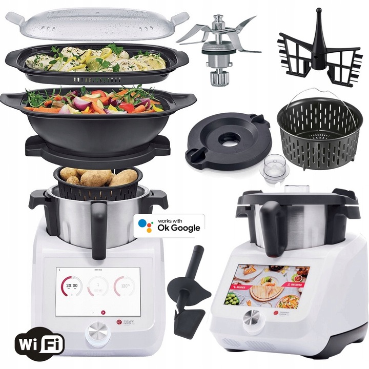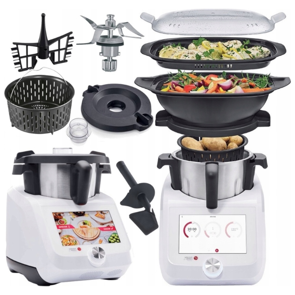 Прибор Monsieur Cuisine Smart — современное и многофункциональное устройство мощностью 1200 Вт, которое, несомненно, украсит вашу кухню. Smart Edition, в отличие от своих предшественников, имеет более отзывчивый и большой 8-дюймовый экран. Устройство поможет вам на каждом этапе приготовления блюда, поскольку оно готовит, измельчает, жарит, эмульгирует, готовит на пару, измельчает, замешивает, перемалывает, замешивает даже самое требовательное тесто , готовит в вакууме методом су-вид и даже весит (ровно 11 функций). В Monsieur Cuisine Smart собрано более 600 рецептов вкусных блюд с пошаговыми инструкциями.