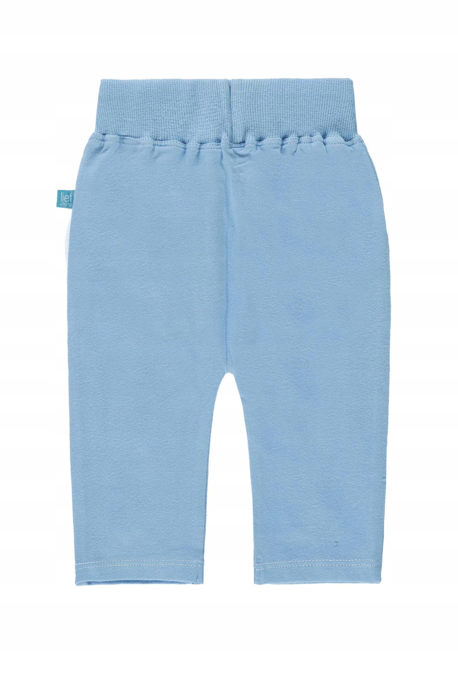 Мальчики в синих спортивных штанах, которые идеально подходят для каждого ребенка в первые месяцы жизни. Они мягкие, с эластичной лентой, которая не приведет ребенка в живот. Они тонкие, так идеально подходят для летних, теплых дней. Брюки будут хорошим дополнением к каждой стилизации молодого человека. Композиция: 100% хлопок