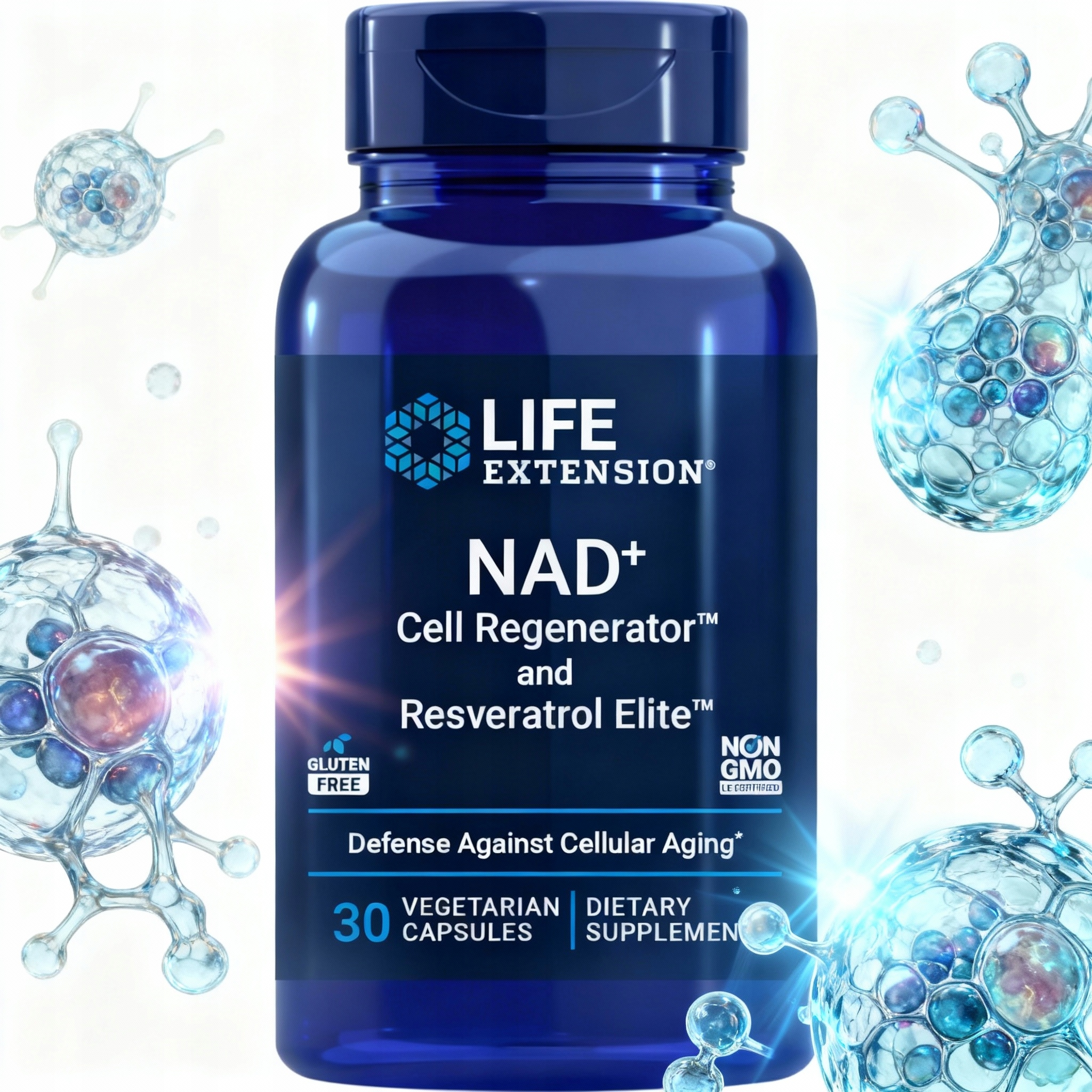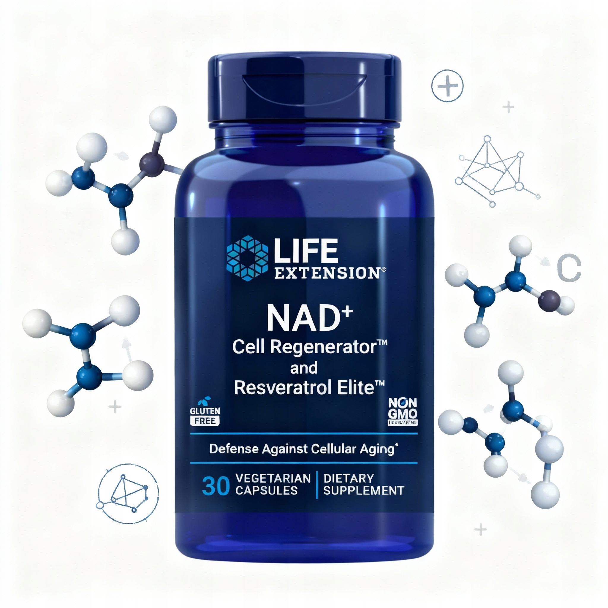Дополнительные питательные вещества: эта формула содержит 300 мг никотинамидрибозида, биодоступный транс-ресвератрол, а также кверцетин и физетин для дополнительных преимуществ для здоровья.