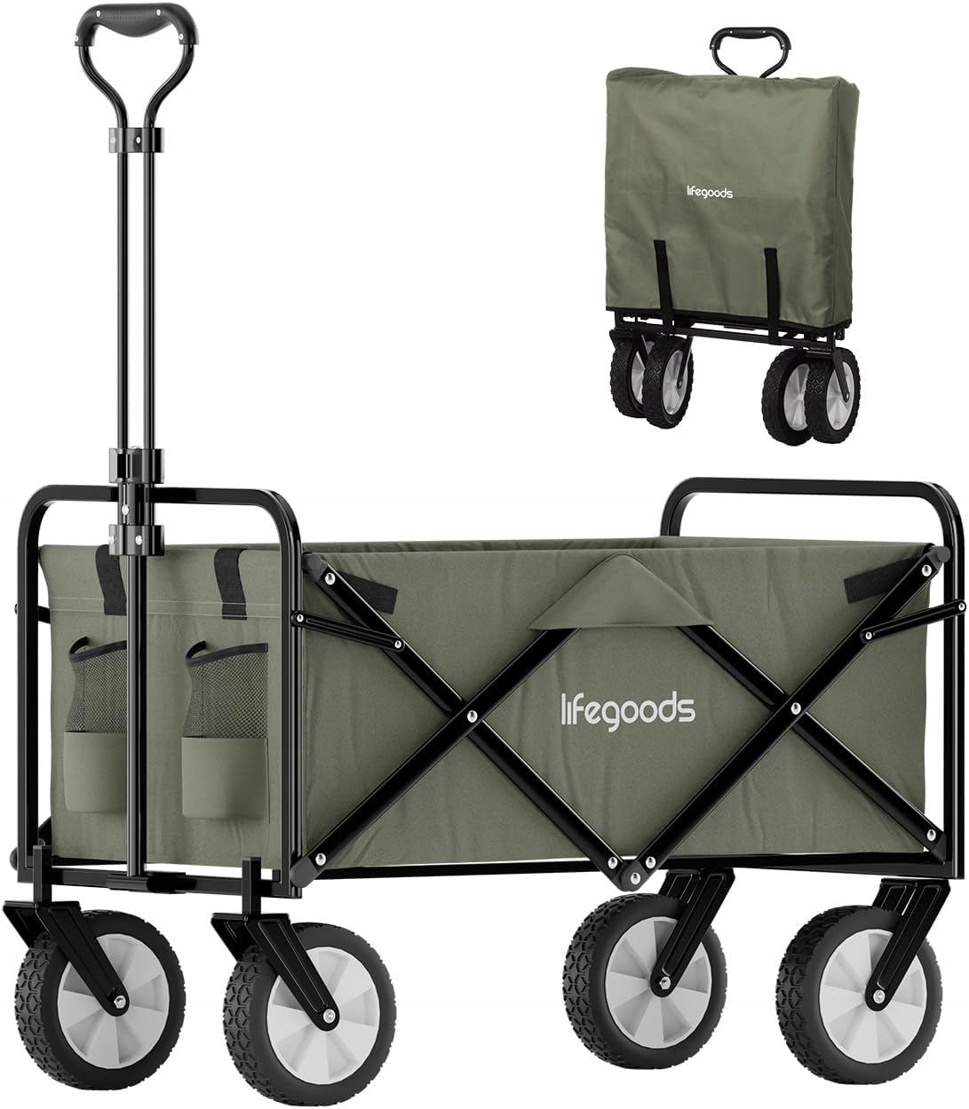 LIFEGOODS АЛЮМІНІЄВИЙ ТРАНСПОРТНИЙ ВІЗОК СКЛАДАНИЙ ЗЕЛЕНИЙ ДО 70КГ