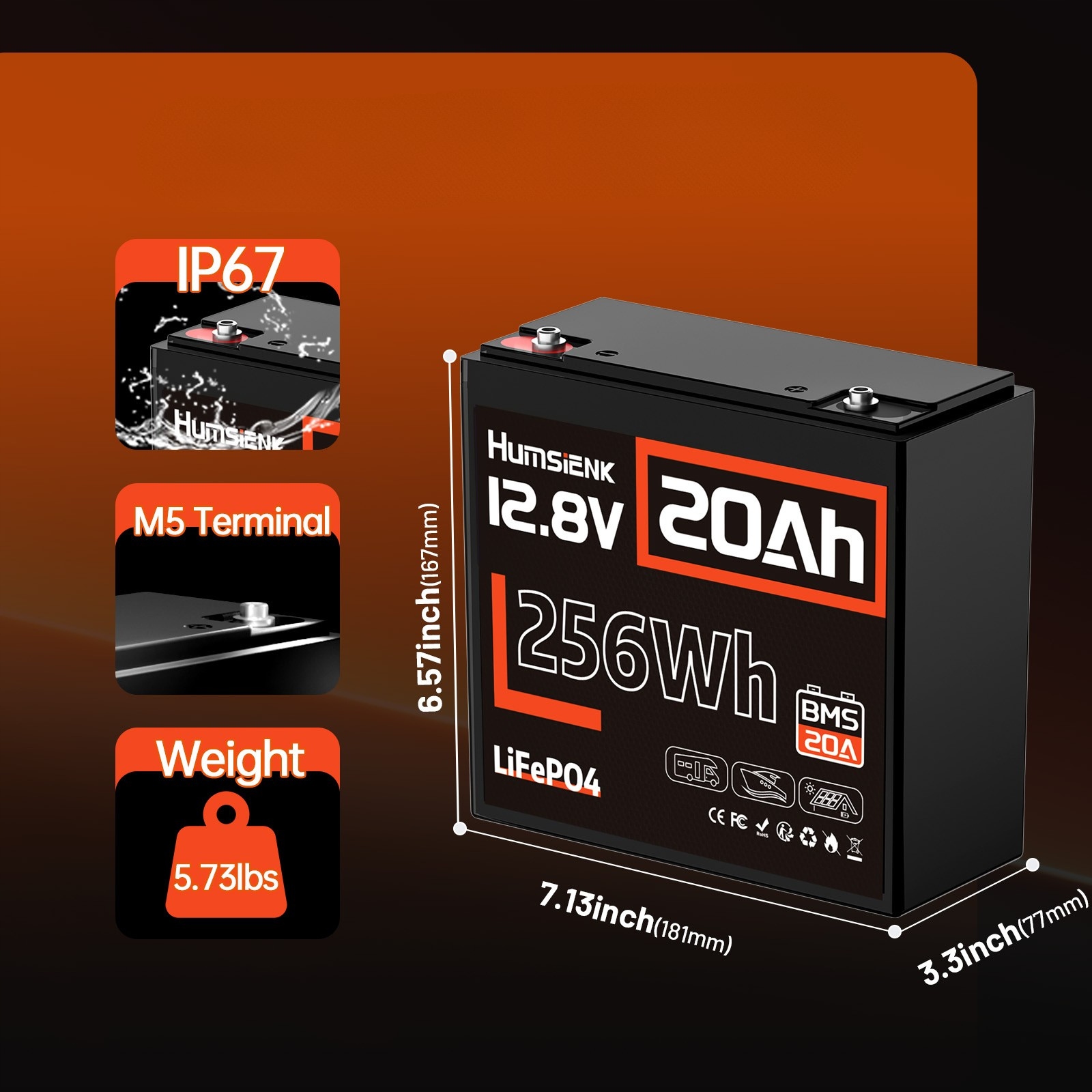 ⚡ LifePo₄ 12V 20AH Humsienk Батарея с BMS 20A | 256WH | 15 000 циклов