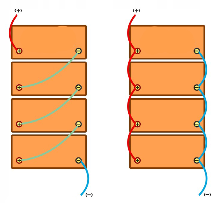 Примечания относительно последовательного соединения батареи: