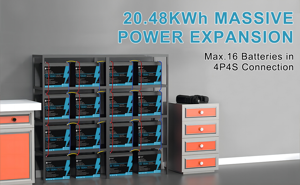 Аккумулятор LiFePO4 12 В, 100 Ач, поддерживающий конфигурации до 4S4P, с надежной системой 48 В, 400 Ач, обеспечивающей 20,48 кВтч энергии и 20,48 кВт мощности. Идеально подходит для автомобильной промышленности, солнечных установок, домашнего хранения энергии и автономных медицинских приложений.