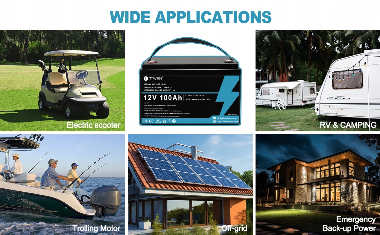 Аккумулятор TTWEN LIFEPO4 обеспечивает более 4000 циклов, что более чем в 10 раз дольше, чем кислотно-спиртовой аккумулятор с 200-500 циклами, что снижает затраты на передачу и определяет общие затраты на потребление. Он весит втрое меньше свинцово-кислотных аккумуляторов, что делает его доступным для использования в автофургонах, на море и в автономном режиме.
