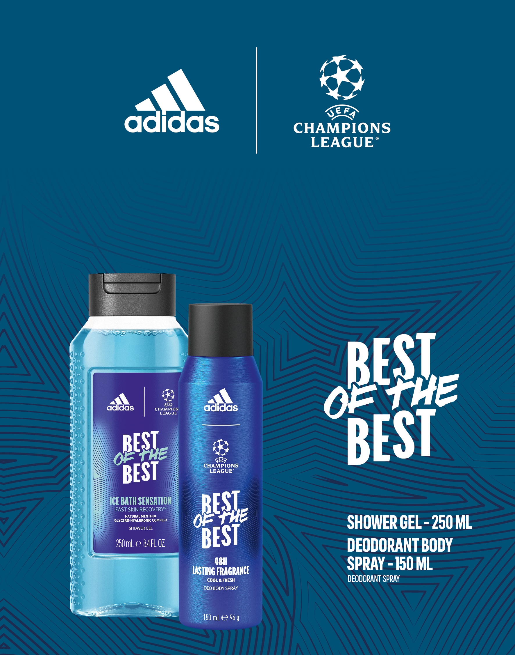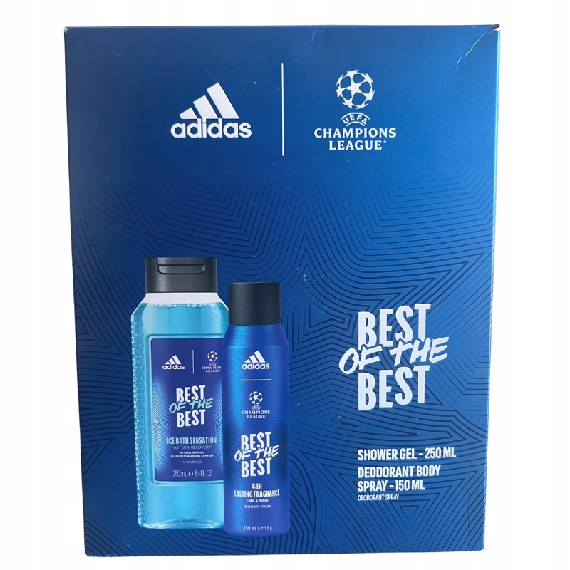 adidas UEFA League League из лучших из лучших h1> Погрузитесь в роскошь футбольных эмоций с Adidas UEFA League League из лучших мужчин мужского пола мужского и спортивного конкурса в одном. Откройте для себя набор, который заставит вас почувствовать себя игроком на международном поле. Этот уникальный набор включает в себя дезодорантный спрей 150 мл и 250 мл геля для душа .