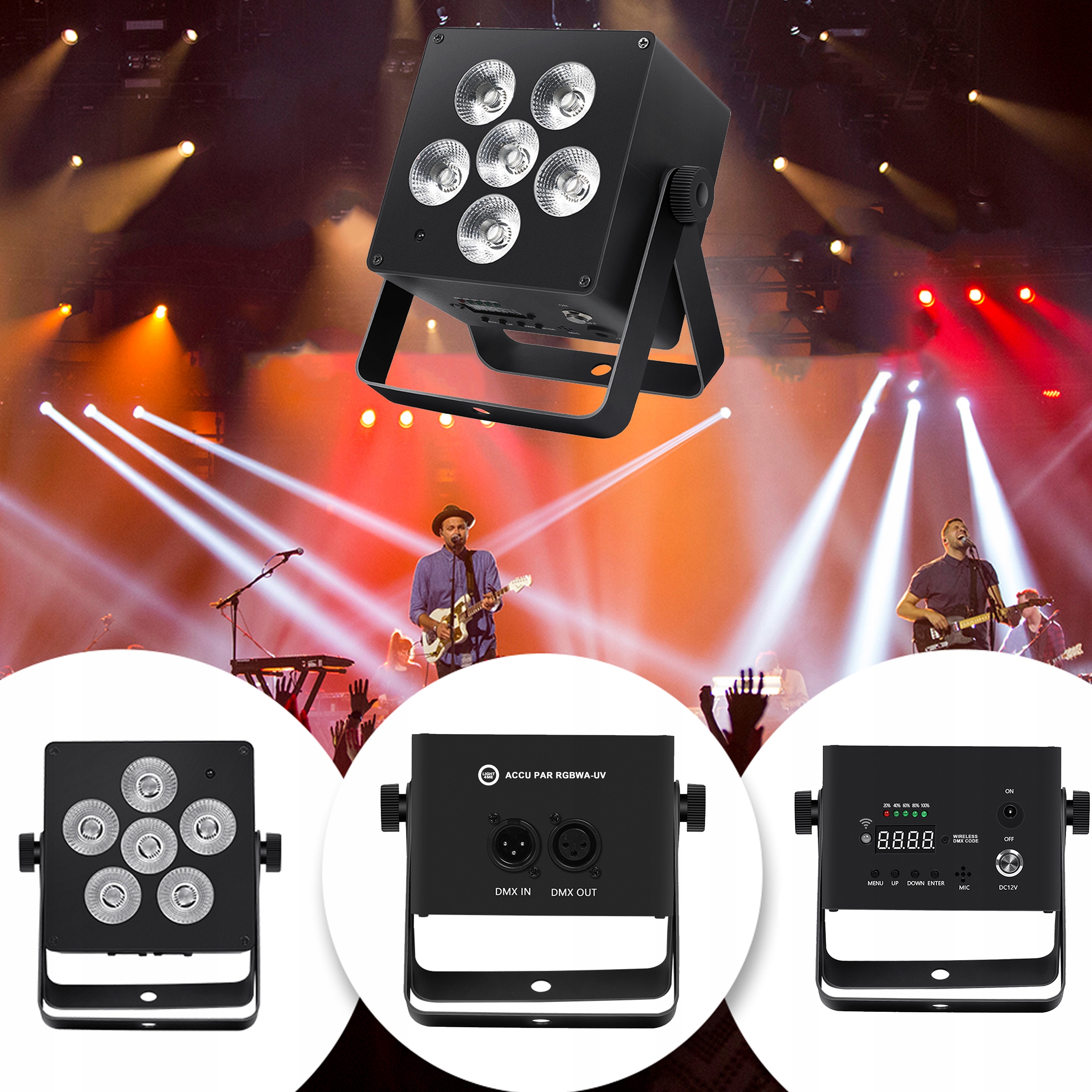 ✔ Сильные светодиоды Rgbwa-uv светодиоды (6 x 6W)-Основная цветовая палитра, от теплых оттенков до интенсивного ультрафиолета. Авто, звук, мастер/раб, DMX и инфракрасный пульт дистанционного управления.
