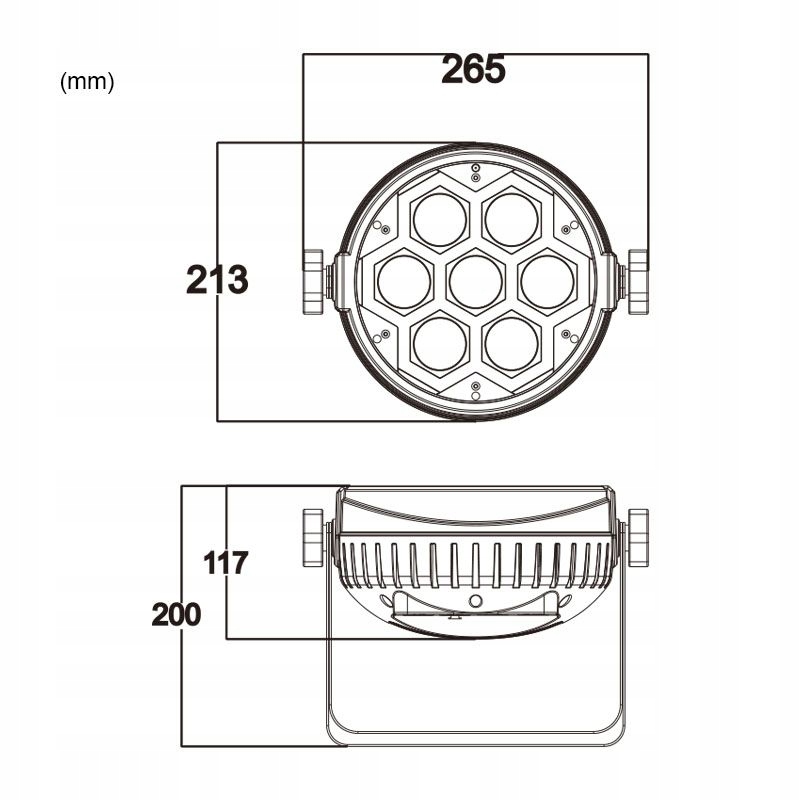LED PAR имеет корпус из прочного, устойчивого к высоким температурам пластика и двойную ручку, позволяющую эксплуатировать его в положении стоя или устанавливать на осветительные стойки, сценические фермы и траверсы.