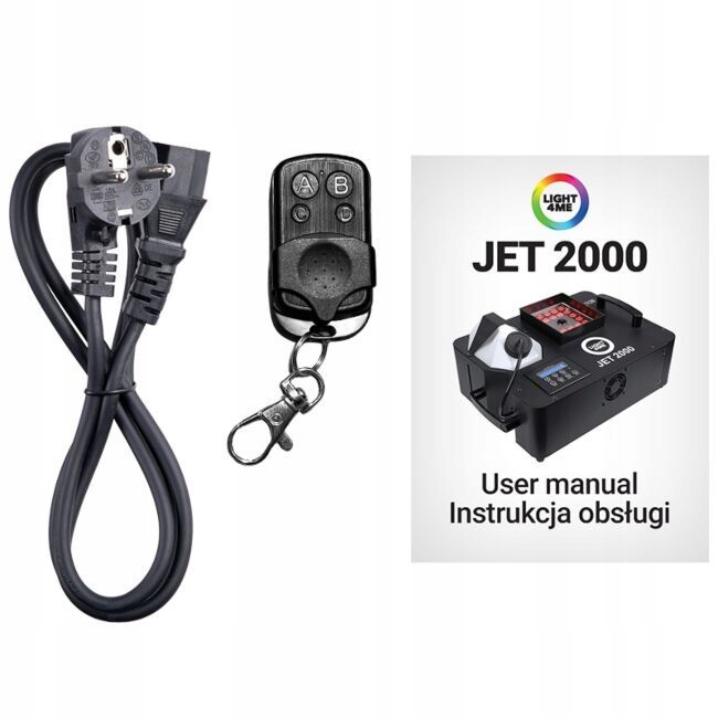 light4me Jet 2000 является профессиональным ✅ вертикальным дымовым генератором ( генератор тумана ) с возможностью беспроводного управления дистанционным управлением , дополнительно оснащенного системой двадцати четырех 3-ваттного дыма . Его преимущества, среди прочего, быстрой времени нагрева (около 4 мин.), Большой объем взорванного тумана, а также эффективная система подсветки . Устройство отлично работает на закрытых сценах , в Музыкальные клубы и Discos , а также во время , события и в мобильных работах DJs .