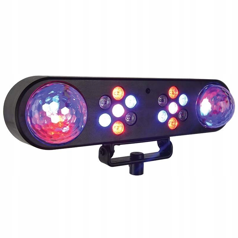 Light4Me Magic Bar — это уникальная панель эффектов, оснащенная двумя сотовыми полусферами, которые действуют как динамический вращающийся зеркальный диско-шар, излучающий множество разноцветных световых лучей. Кроме того, в комплект входят два светодиодных прожектора PAR. Оба эти элемента могут работать в режиме стробоскопа, создавая эффект мигания и замирания, что обеспечивает потрясающее развлечение на танцполе!