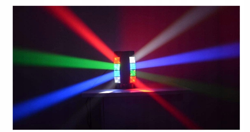 Мультиэффект Spider — идеальный световой эффект для любой танцевальной вечеринки! Устройство имеет два параллельных светодиодных луча, которые могут двигаться независимо, наклоняясь вдоль длинной оси. Каждый луч имеет 4 мощных диода мощностью 3 Вт, излучающих лучи цветов RGBW. Внешние края каждого луча оснащены системой дополнительных светодиодных ленточных диодов, а все это дополнено красным и зеленым лазером.
