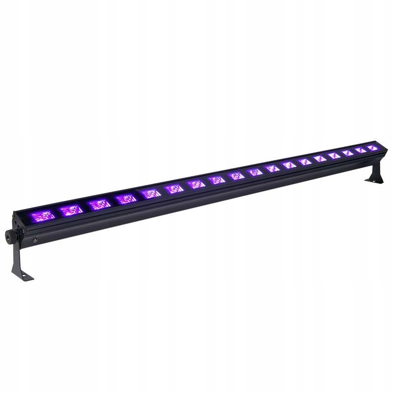Light4Me UV BAR 18 — это профессиональная, добротная и в то же время очень легкая осветительная лента, оснащенная восемнадцатью светодиодами мощностью по 3 Вт, задача которых — излучать ультрафиолетовый свет. Светодиодная панель отлично работает в пабах, ресторанах, танцевальных клубах и дискотеках, где УФ-излучение создает эффект, напоминающий флуоресценцию определенных цветов – особенно белого.