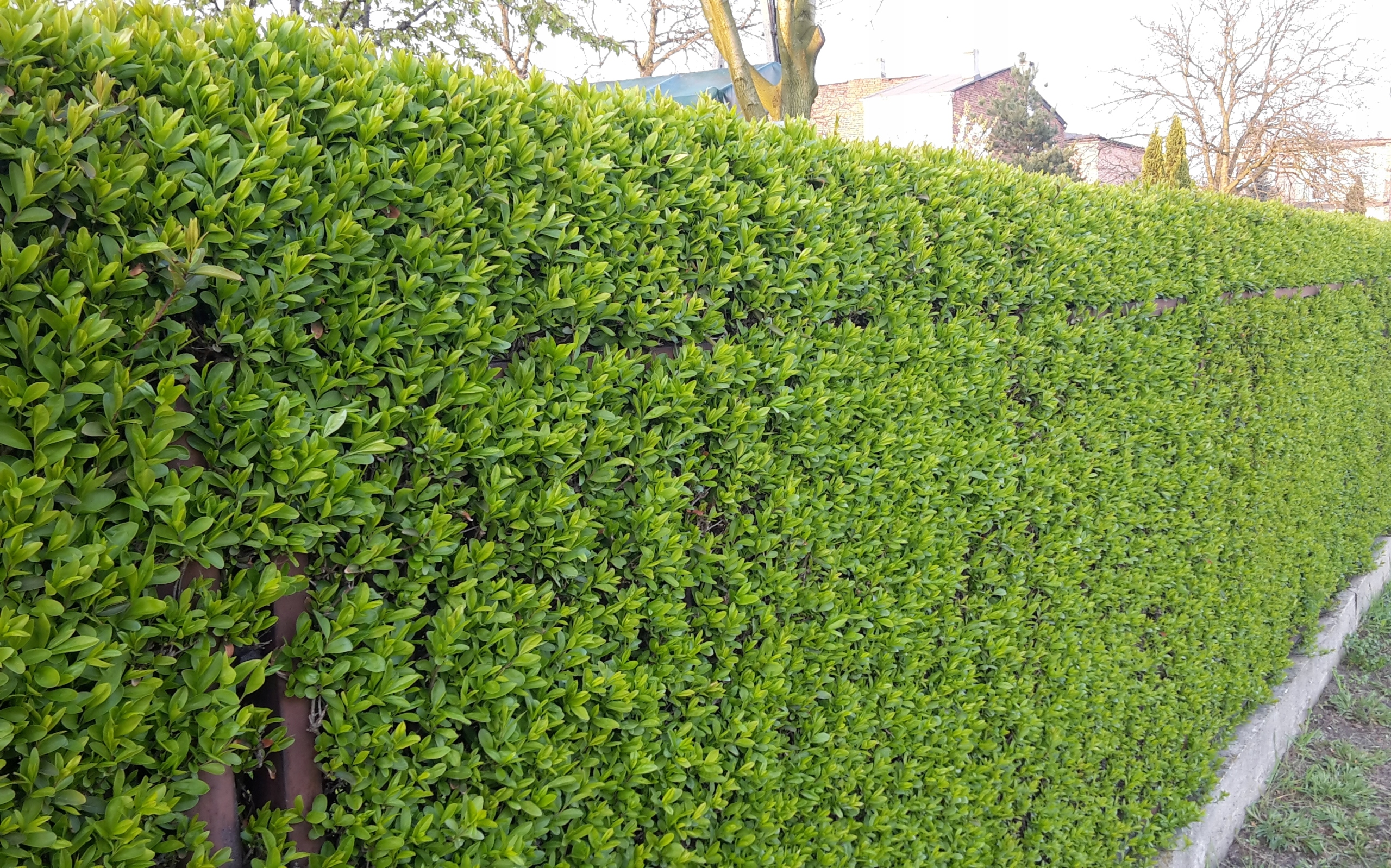 Часто вырезанная изгородь из лигустры выглядит очень впечатляюще, она зеленая, в нем нет разрешения.