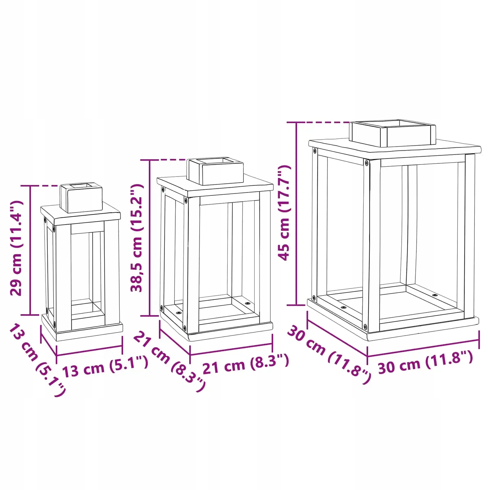 - Набор «Трио» для динамического воздействия В каждом наборе три фонаря разного размера: 30х30х44 см, 20х20х37 см и 14х14х28 см. Благодаря этому вы можете свободно комбинировать их, будь то на столе, подвешены или размещены в гостиной, создавая уютную атмосферу.
