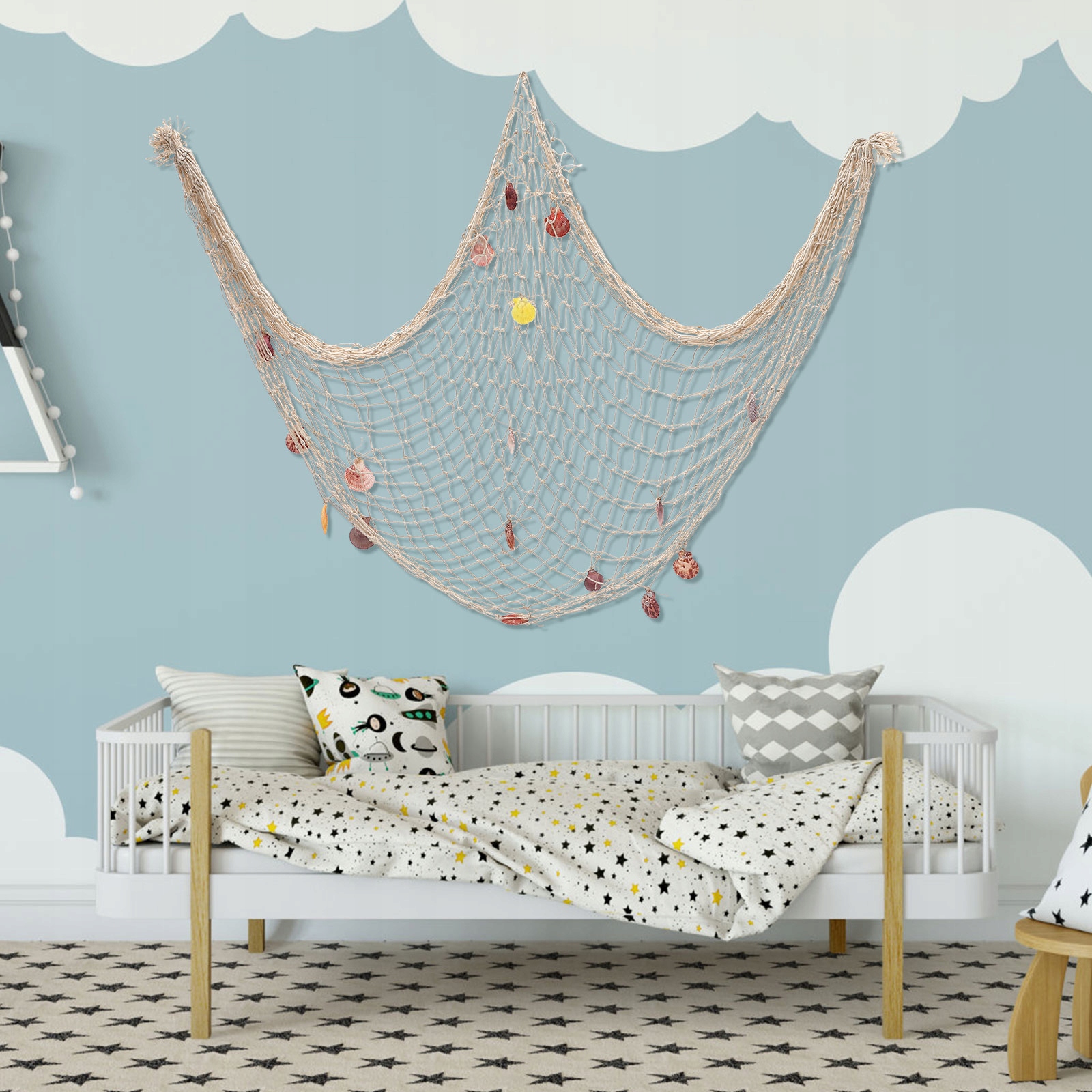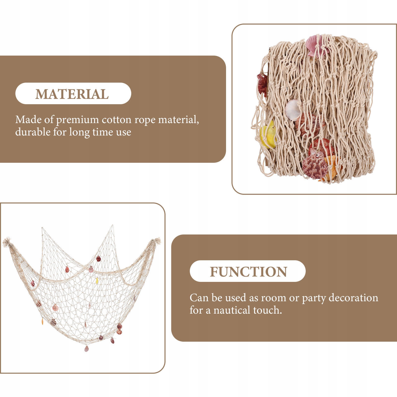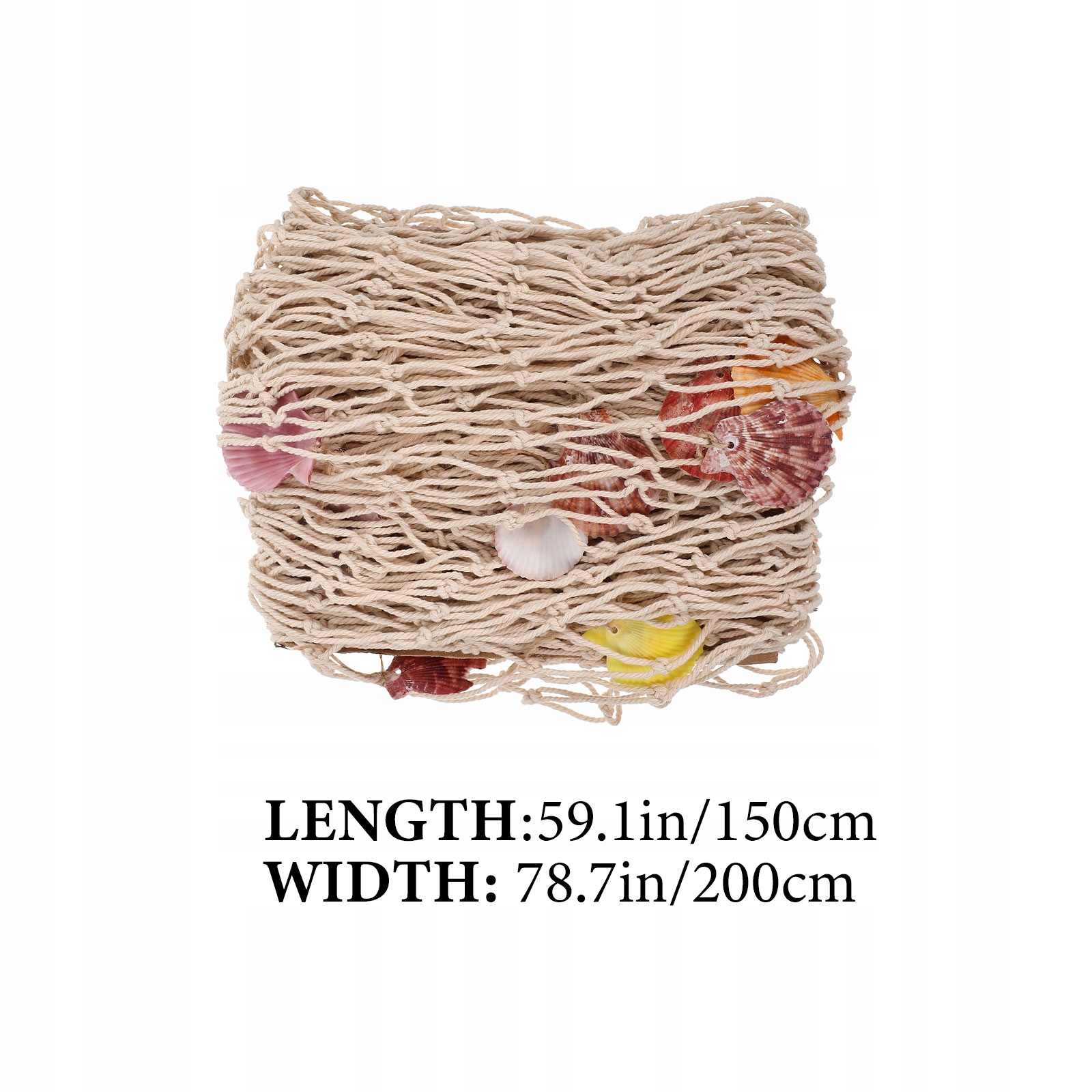 Эта декоративная рыболовная сеть изготовлена из хлопчатобумажных веревок премиум-класса в классическом средиземноморском стиле и подходит для вечеринок на морскую тематику или украшения дома, а также является хорошим реквизитом для фотографий. Украшен орнаментом из ракушек, очень красиво и привлекательно.