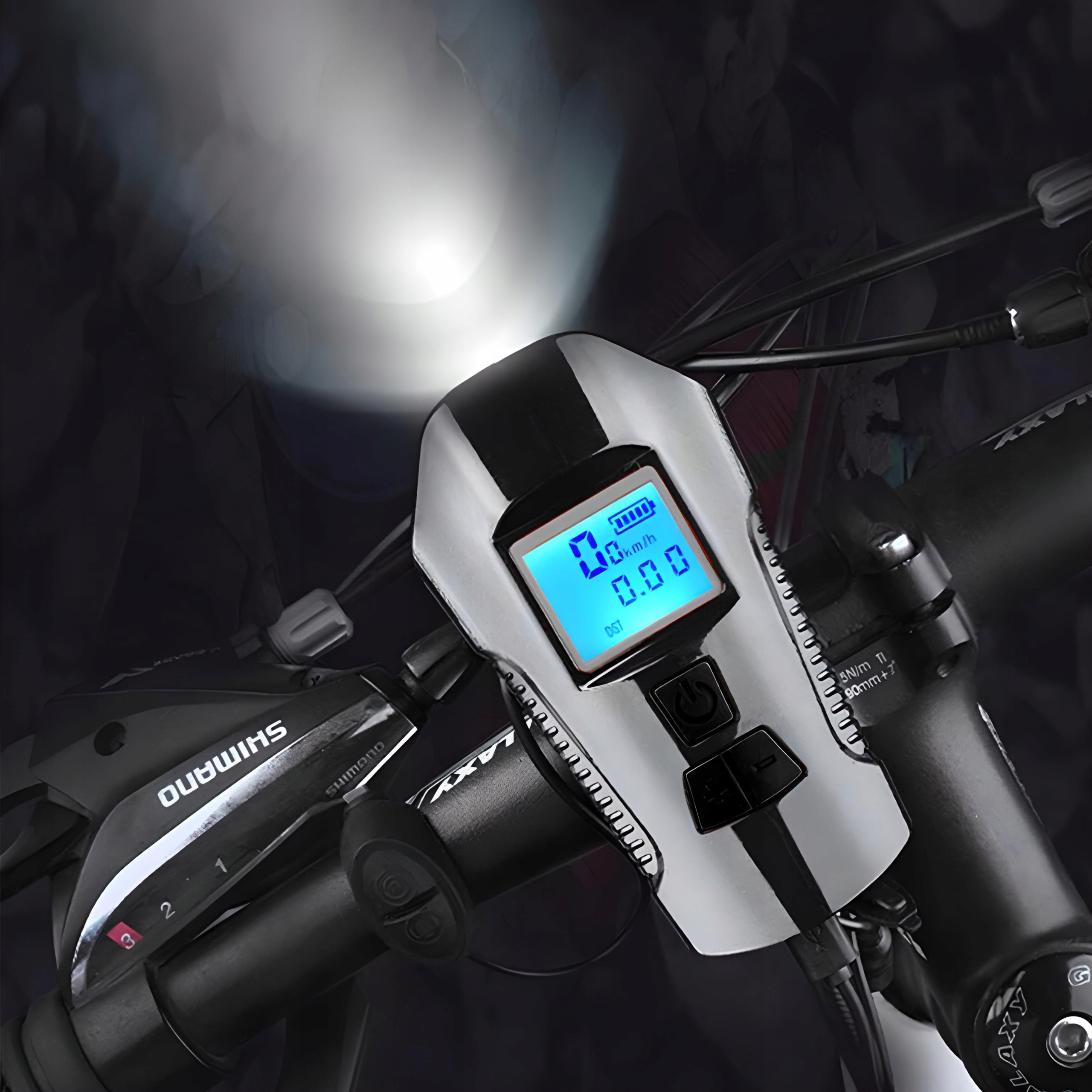Высококачественный велосипедный фонарь со счетчиком и спидометром, заряжаемый через USB-кабель. Устройство повышает безопасность велосипедистов во время езды. Благодаря использованию ярких светодиодов вы будете более заметнына дороге.