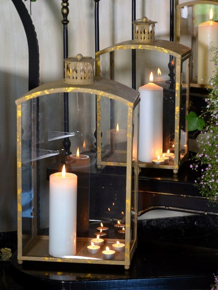 Винтажный шикарный золотой декоративный фонарь создаст романтическую ауру провансальского стиля в любой комнате. Он восхищает своей чувственной формой и большой стеклянной поверхностью. Окруженный старинной металлической рамой, он отсылает к стилю шебби-шик. Фонарь отлично подойдет для подарка. Винтажный шикарный золотой декоративный фонарь - прекрасное украшение интерьера, для балкона или террасы.