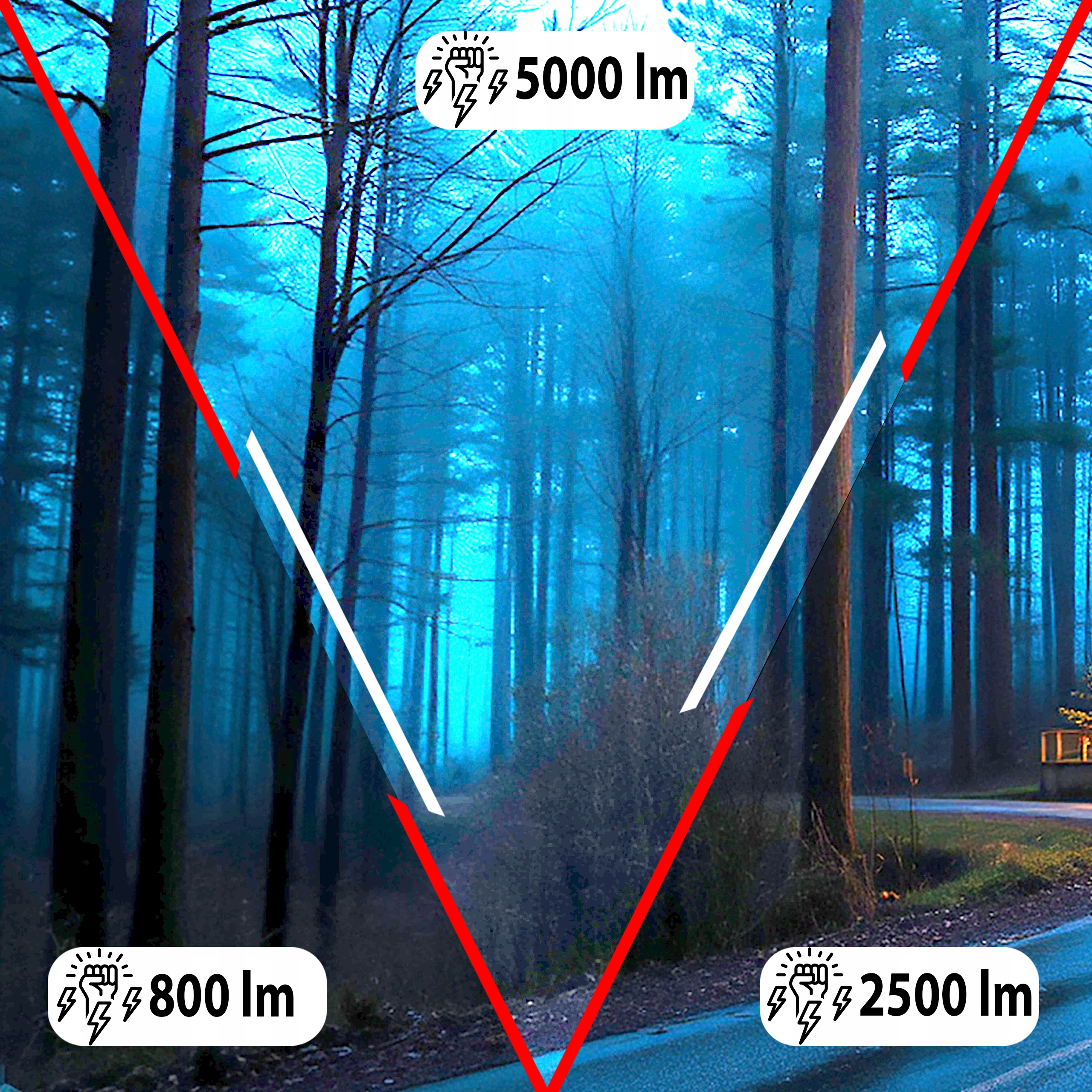 1️⃣ Сильный (5000 лм) — максимальная дальность до 1000 м.