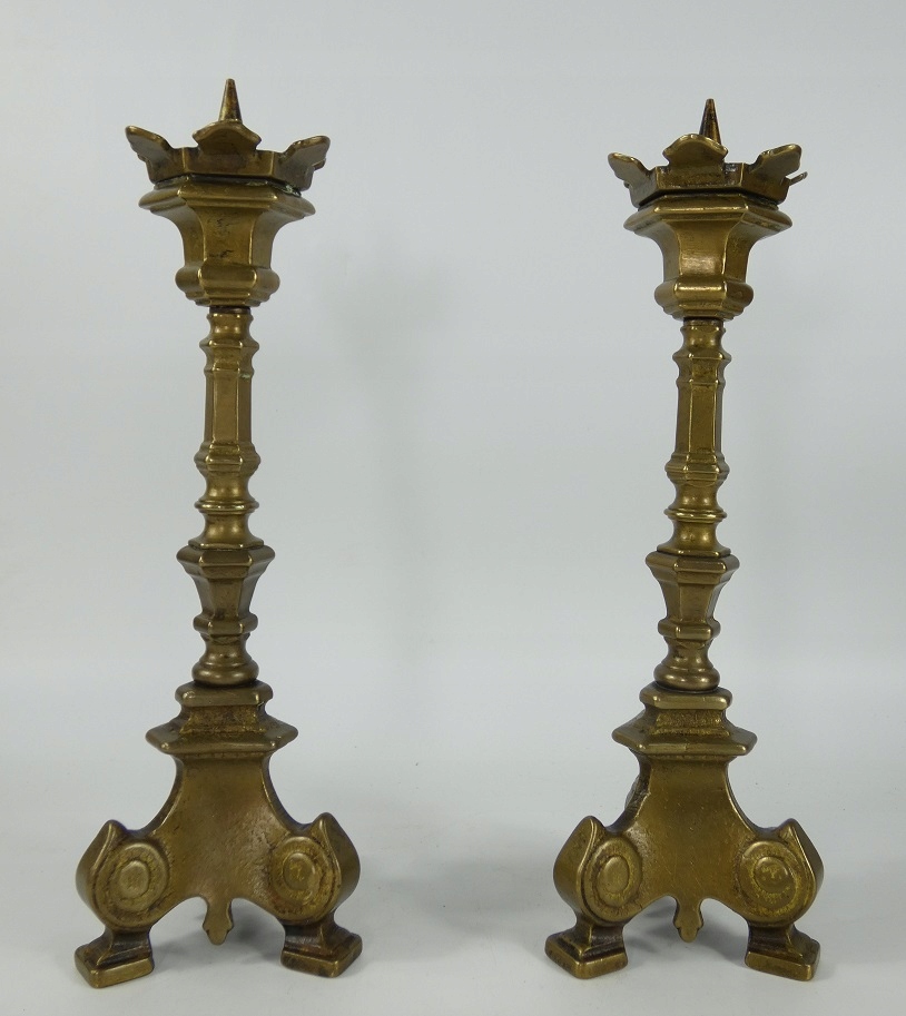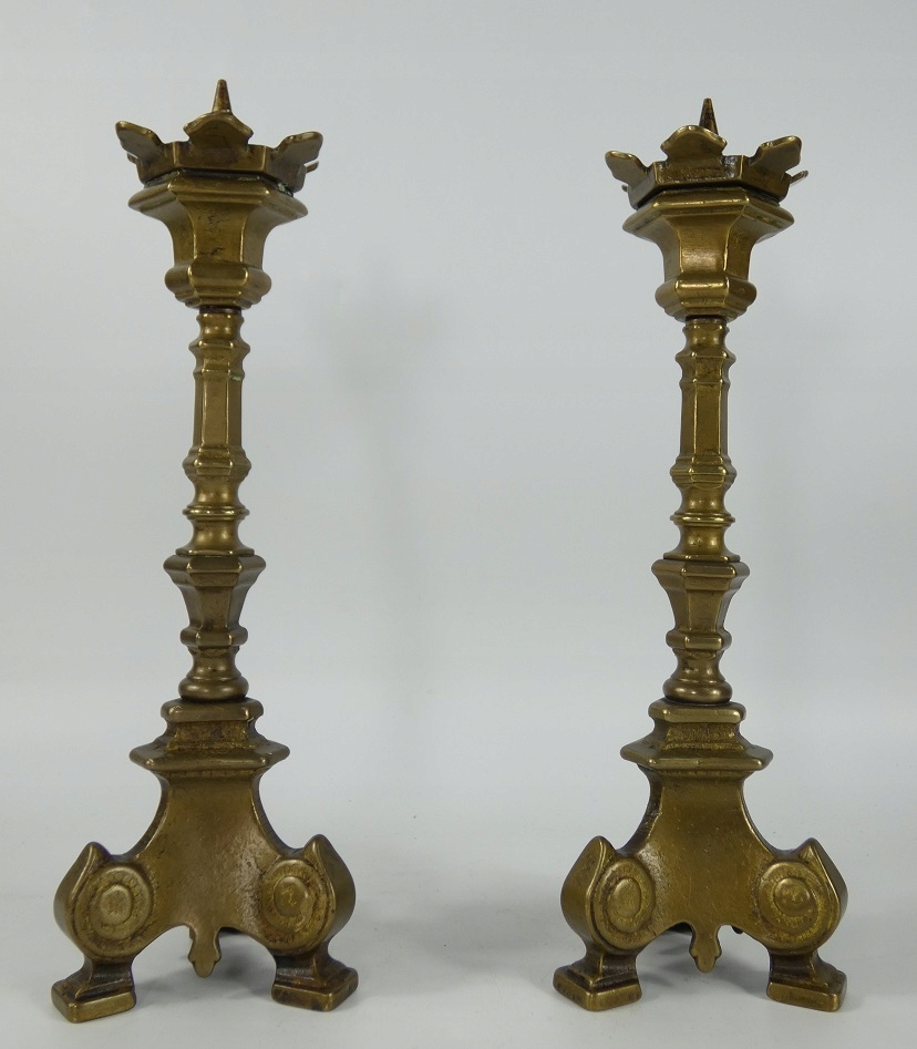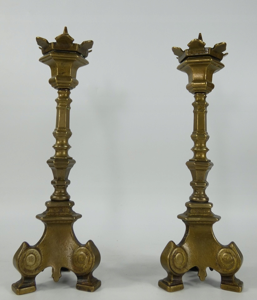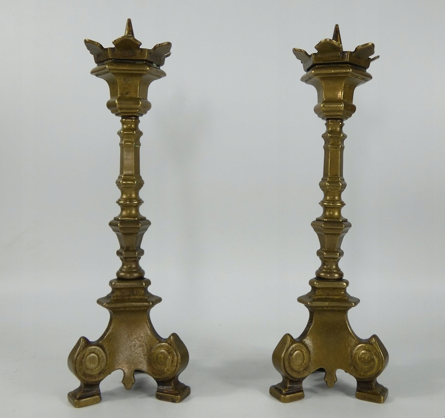 СВЕТИЛЬНИК, пара латунных подсвечников, 25,5 см, ГОТИЧЕСКИЙ