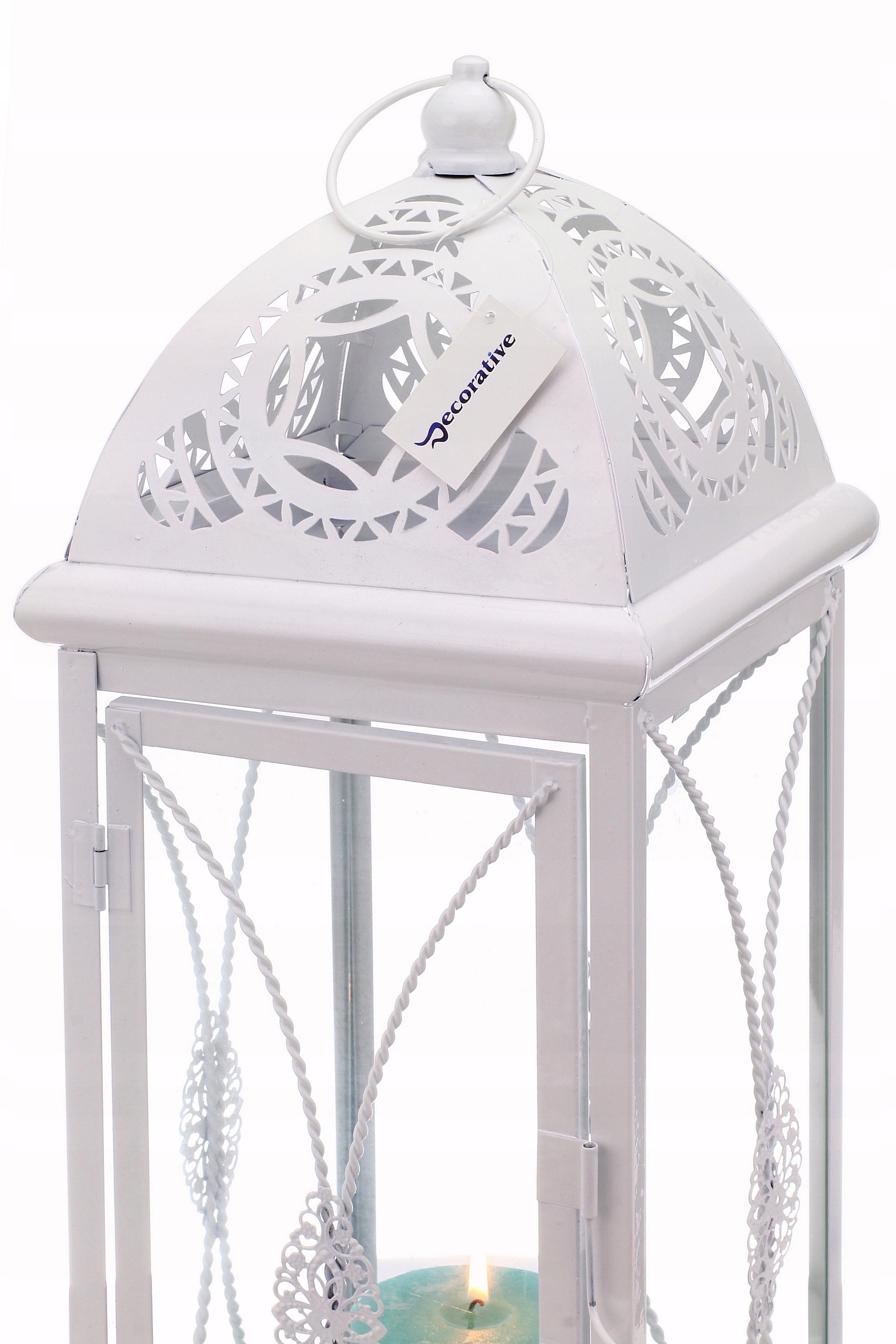 Очень красивая модель фонаря в винтажном стиле, украшенная ажурным декором с каждой стороны.