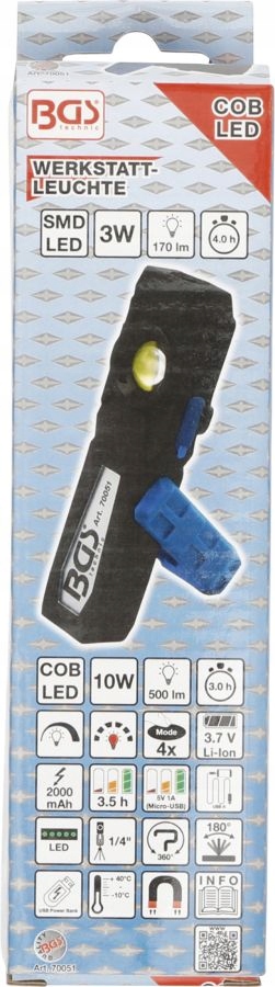 Ліхтарик COB, світлодіодний, 500 лм, акумулятор, з шарніром